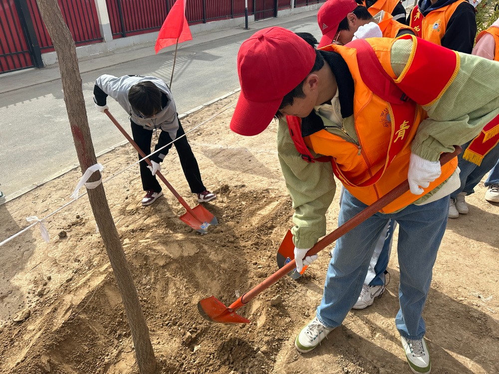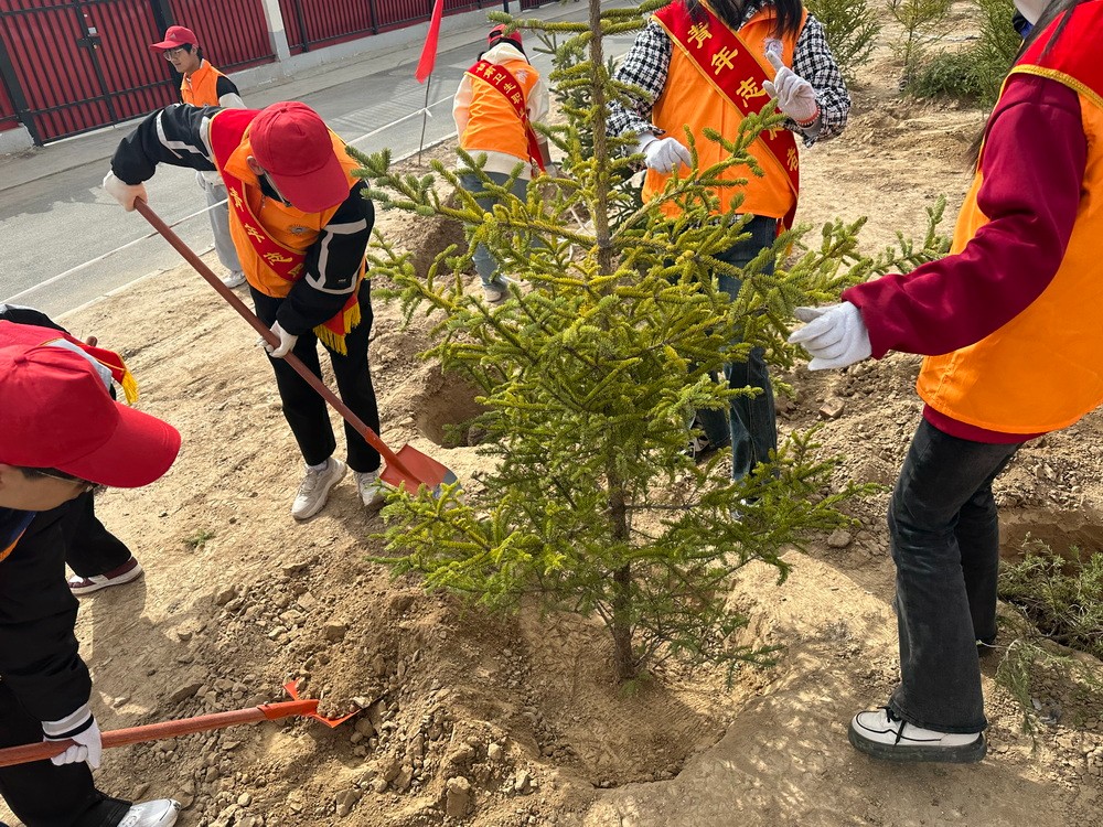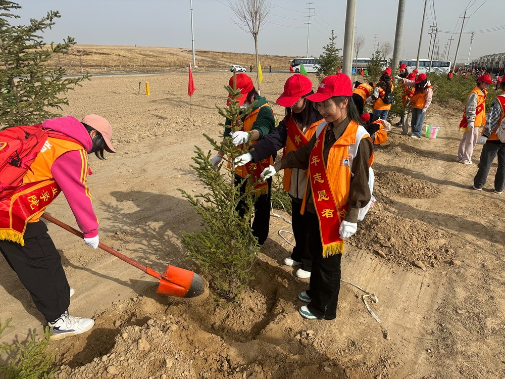 四月的兰州新区,春风拂面,草长莺飞,正是植树添绿的好时节。4月3日,校团委组织第十期青马培训班40名学员参加了由兰州新区西岔园区组织的“共植团结树、共建同心林”义务植树活动。