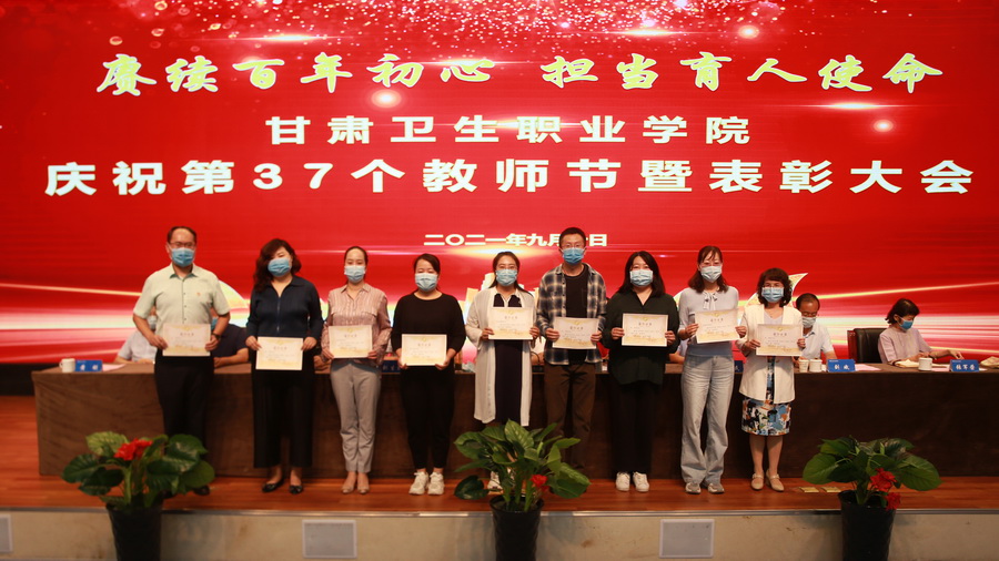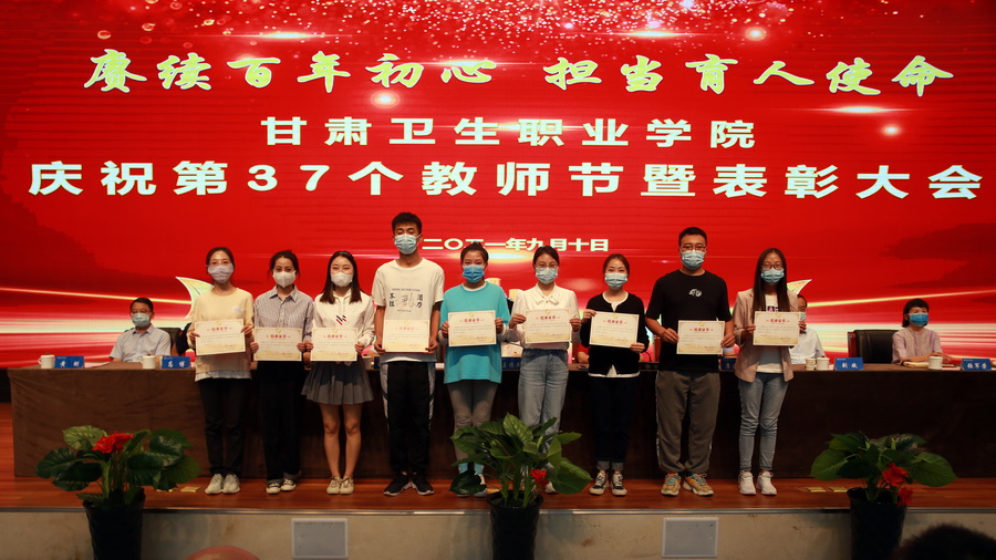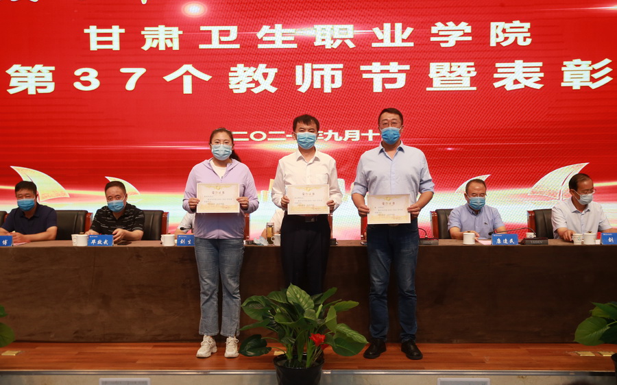 大会为从教30年老教师颁发由省委省政府授予的三十年教龄纪念证章;对学院2020-2021学年先进集体以及“园丁奖”获得者代表、优秀辅导员代表进行了表彰,由学校领导为获奖代表颁发荣誉证书。同时,大会为“青蓝工程”青年教师代表颁发了培训结业证书。