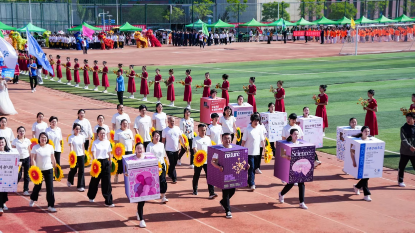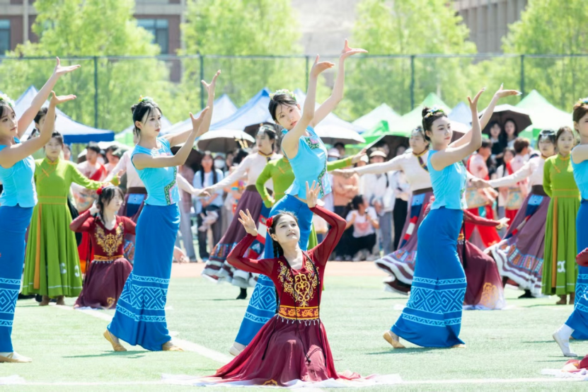 开幕式上,除了常规的运动员入场式之外,由食堂厨师、物业人员和超市职工组成的服务保障方队、学生社团方队及各专业特色展示方队成为亮点,充分展示了多彩的校园文化及学校“五育并举”育人理念。各学院精心编排的百人舞表演更是将爱国爱党爱校、民族团结、服务健康等思政教育内容巧妙融入。