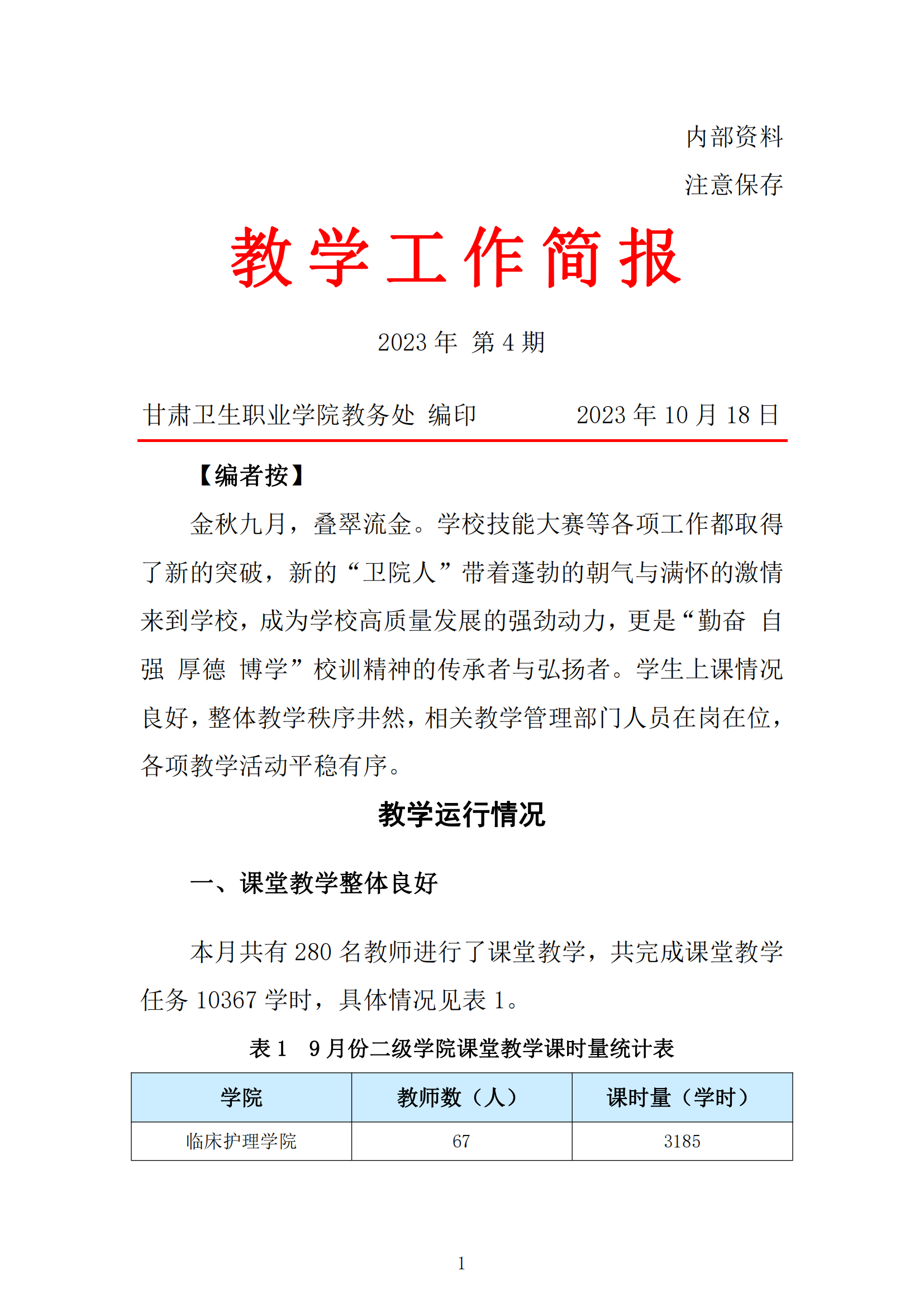 2023年9月份教学工作简报