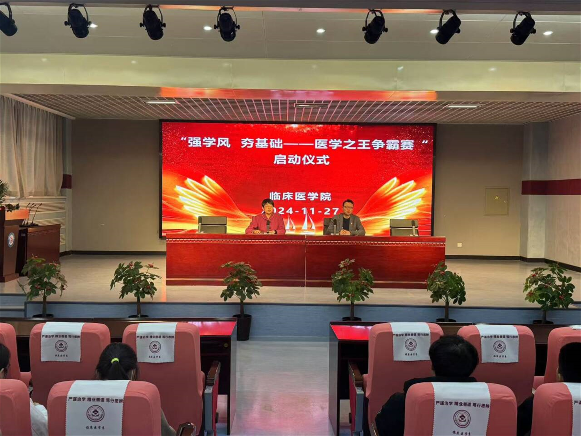 为进一步落实学校学风建设专项教育活动方案要求,营造“人人爱学习”的良好风气和班级之间你追我赶竞争氛围,临床医学院举办“促学风,夯基础——医学之王争霸赛”,并于11月27日召开启动会,学院党总支书记、院长出席启动会,各班级辅导员、班干部及学生会干部参加。