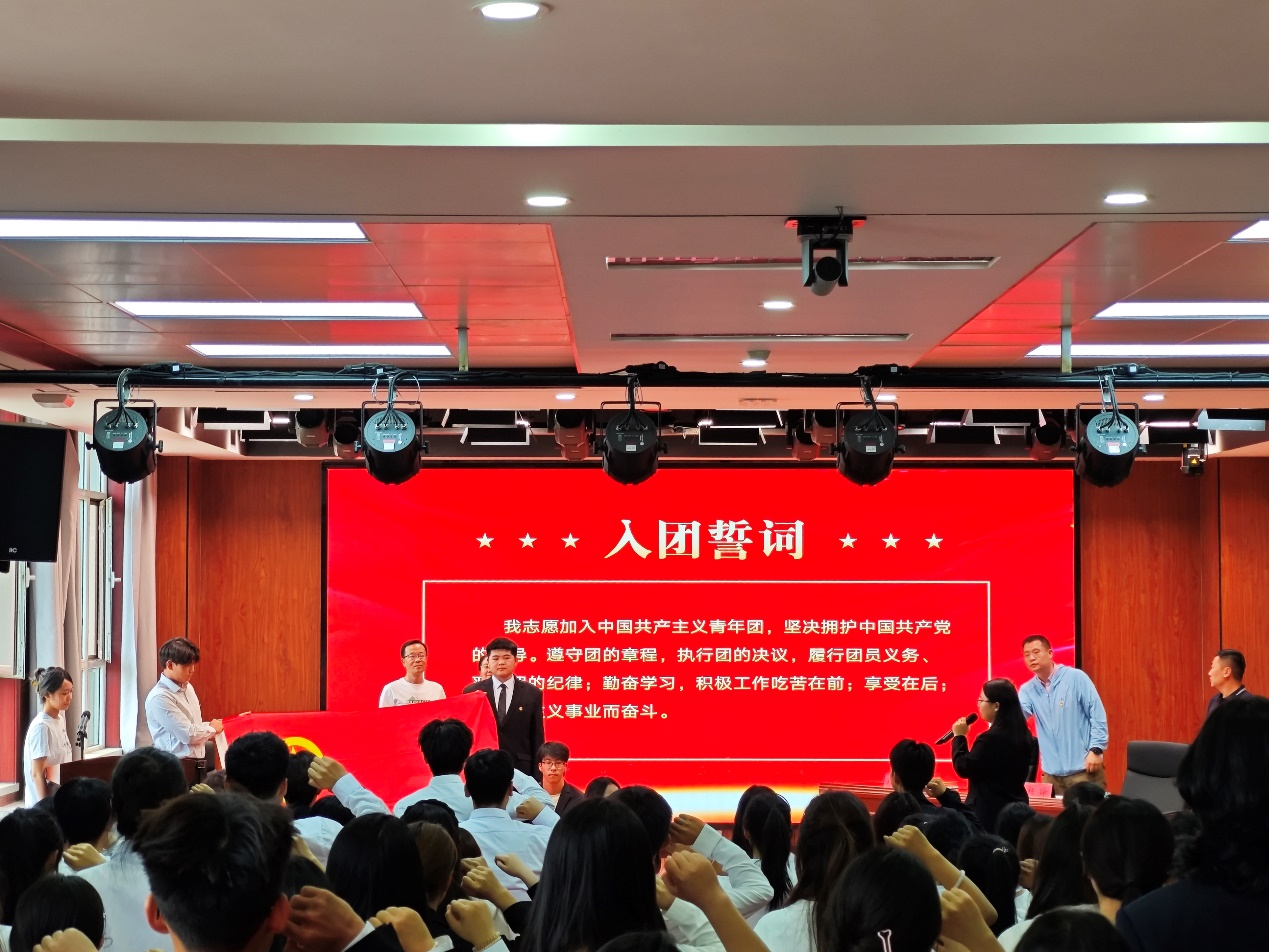 仪式在庄严的国歌声中拉开帷幕,随后学院团委书记宣读了新团员名单。在热烈的掌声中,老师们为新团员代表佩戴团徽,这一枚枚团徽不仅是团员身份的象征,更是一份责任与使命的传承。
