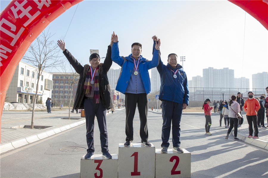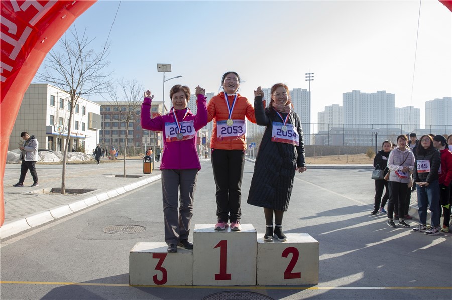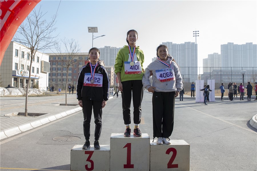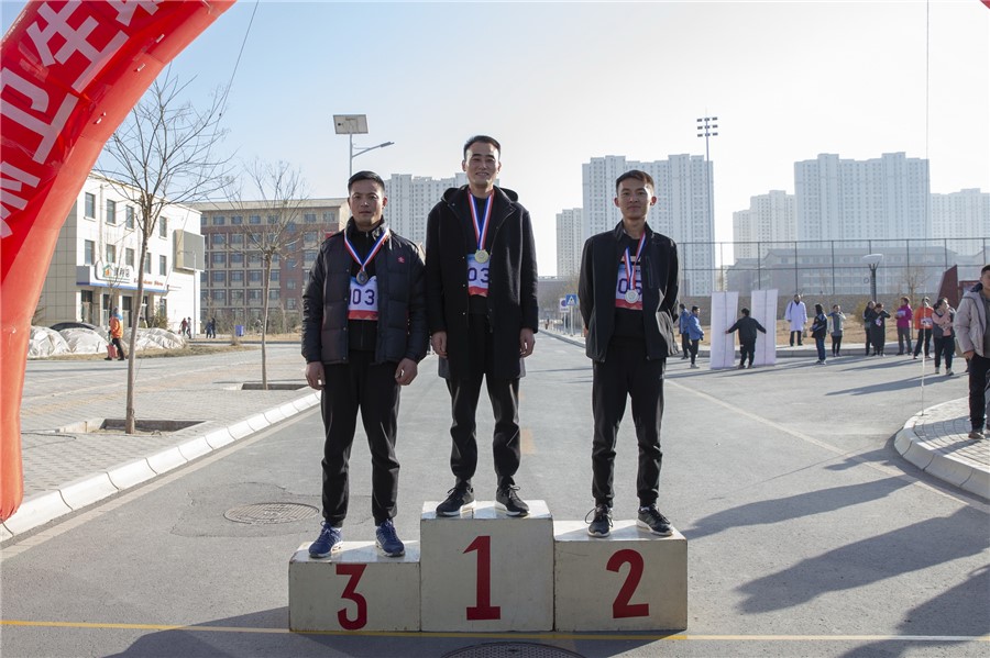 本次比赛分教职工男子组、教职工女子组、学生男子组、学生女子组四个组别,本次比赛路线途经7号教学楼、医学基础部、北门、人工湖、学生公寓、教职工公寓、体育馆、排球场、体育馆西门、田径场。校长任晖宣布开赛,党委书记姜德民发令,伴随着发令枪声全体参赛选手不畏严寒奋勇争先。在寒冷的比赛中参赛的队员们相互竞争、加油鼓劲,充分发扬了“友谊第一 比赛第二”的体育精神,让寒冷的冬季有了些许温暖。在激烈又欢快的气氛中,选手们陆续冲过终点。最终,吉帆帆、冯灵虎、郭彦存三位老师获得教职工青年男子组前三名。刘万里、任世伟、王平三位老师获得教职工中老年男子组前三名。王双来、赵秋燕、吴亚亚三位老师获得教职工青年女子组前三名。罗亚莉、赵晓玲、王凤丽三位老师获得教职工中老年女子组前三名。车建强、宋尕文、李泽辉获得学生男子组前三名。白会霞、次旺央宗、姚马丽获得学生女子组前三名。