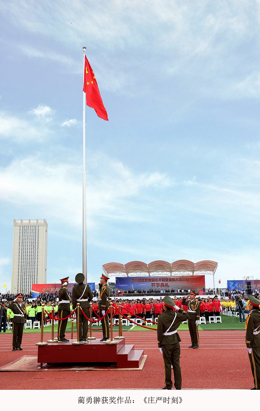 在这次主题教育活动成果征集展示和表彰活动中,学校共有2部摄影作品获奖。其中一部是周瑞安老师的《不忘初心、重温誓言》摄影组照,获摄影组一等奖;另一部是蔺勇翀老师的摄影作品《庄严时刻》,获摄影组二等奖。