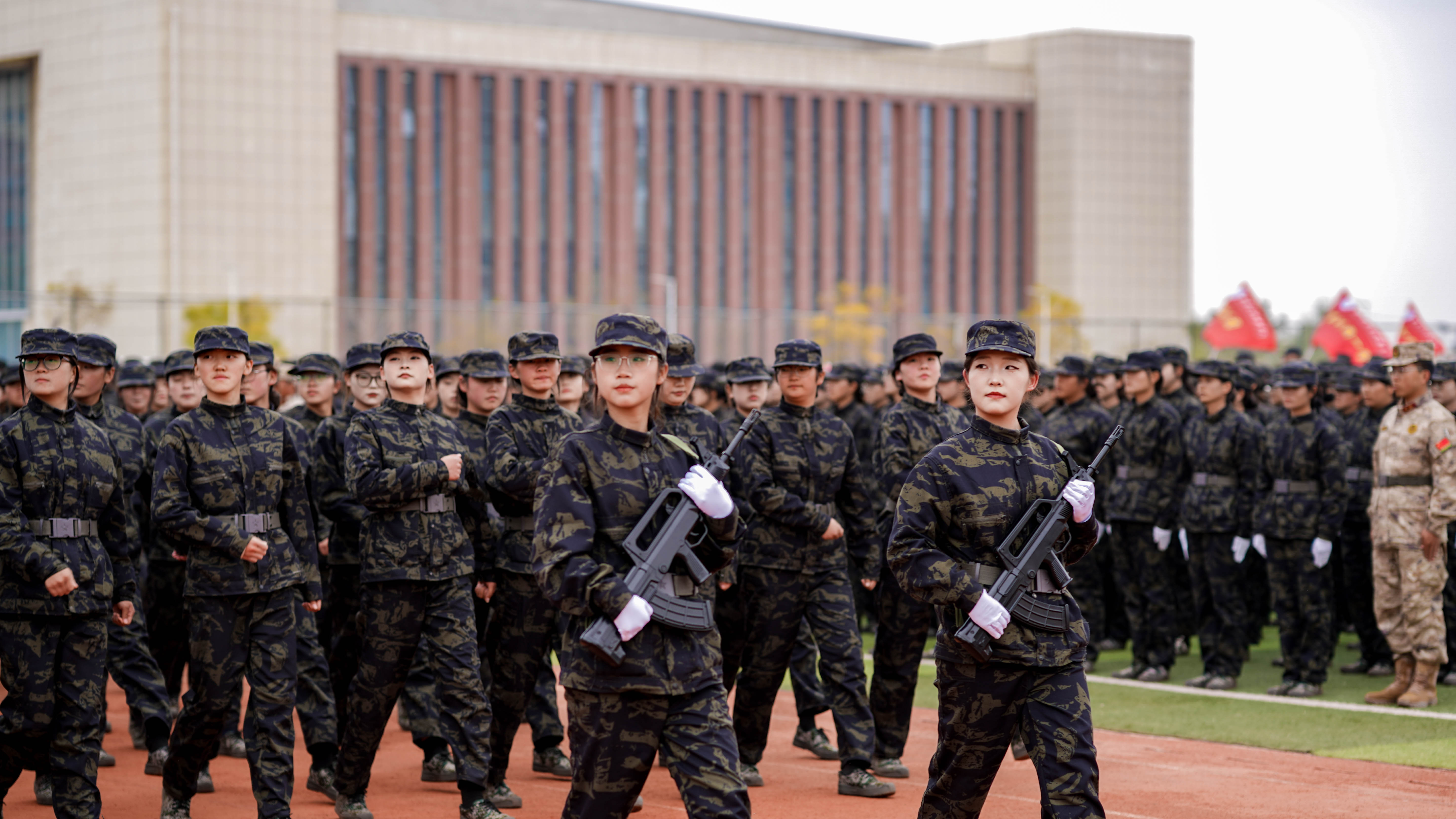 汇报表演中,同学们以分列式、手语操、刺杀操、匕首操、军体拳、警棍术、擒敌拳、战术综合演练等多个科目,全方位展示了军训期间的训练成果,整齐划一的动作、昂扬向上的气势,将军人的刚毅与青春的活力完美融合,赢得现场阵阵掌声。