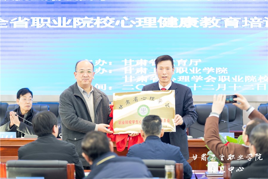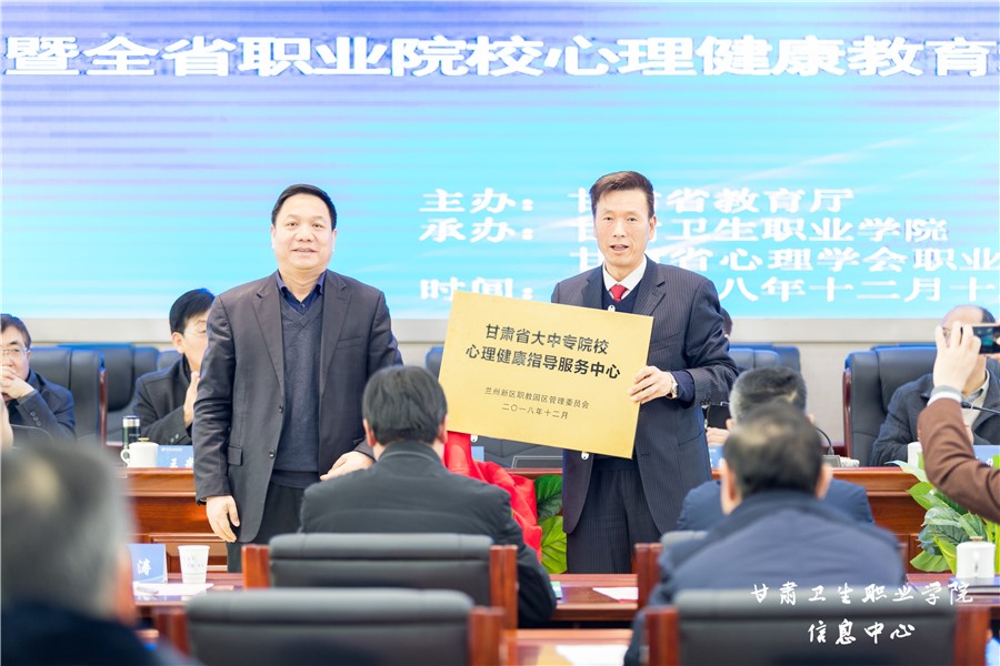 会上,甘肃省心理学会理事长、西北师范大学心理学院院长周爱保为甘肃省心理学会职业院校学生心理健康指导委员会授牌,兰州新区职教园区管委会副主任朱廷珺为全省大中专院校心理健康指导服务中心落成授牌。