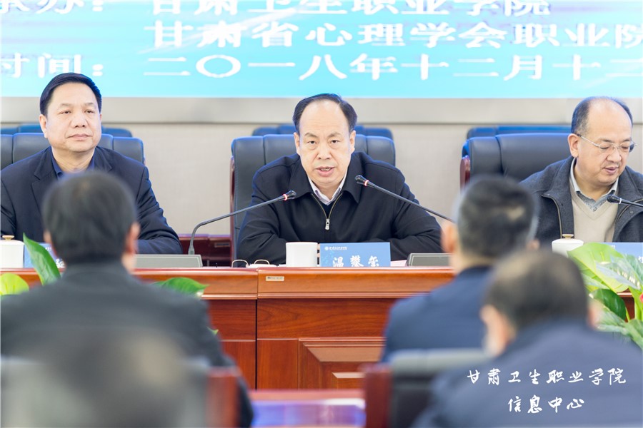 12月12日,甘肃省心理学会职业院校学生心理健康指导委员会成立大会暨2018年全省职业院校心理健康教育培训班开班仪式在我院举行,职教园区管委会副主任朱廷珺、高校工委思想政治工作处处长温攀玺、甘肃省心理学会理事长、西北师范大学心理学院院长周爱保、甘肃省心理学会秘书长、兰州大学教授王光荣、甘肃省教科院副院长弋文武、我院在家校领导、甘肃省心理学会职业院校学生心理健康指导委员会41名委员、全省职业院校心理健康教育培训班50余名学员代表、20余位特邀专家和嘉宾、我院全体辅导员班主任、学生代表参加了本次会议,会议由学院党委书记姜德民主持。