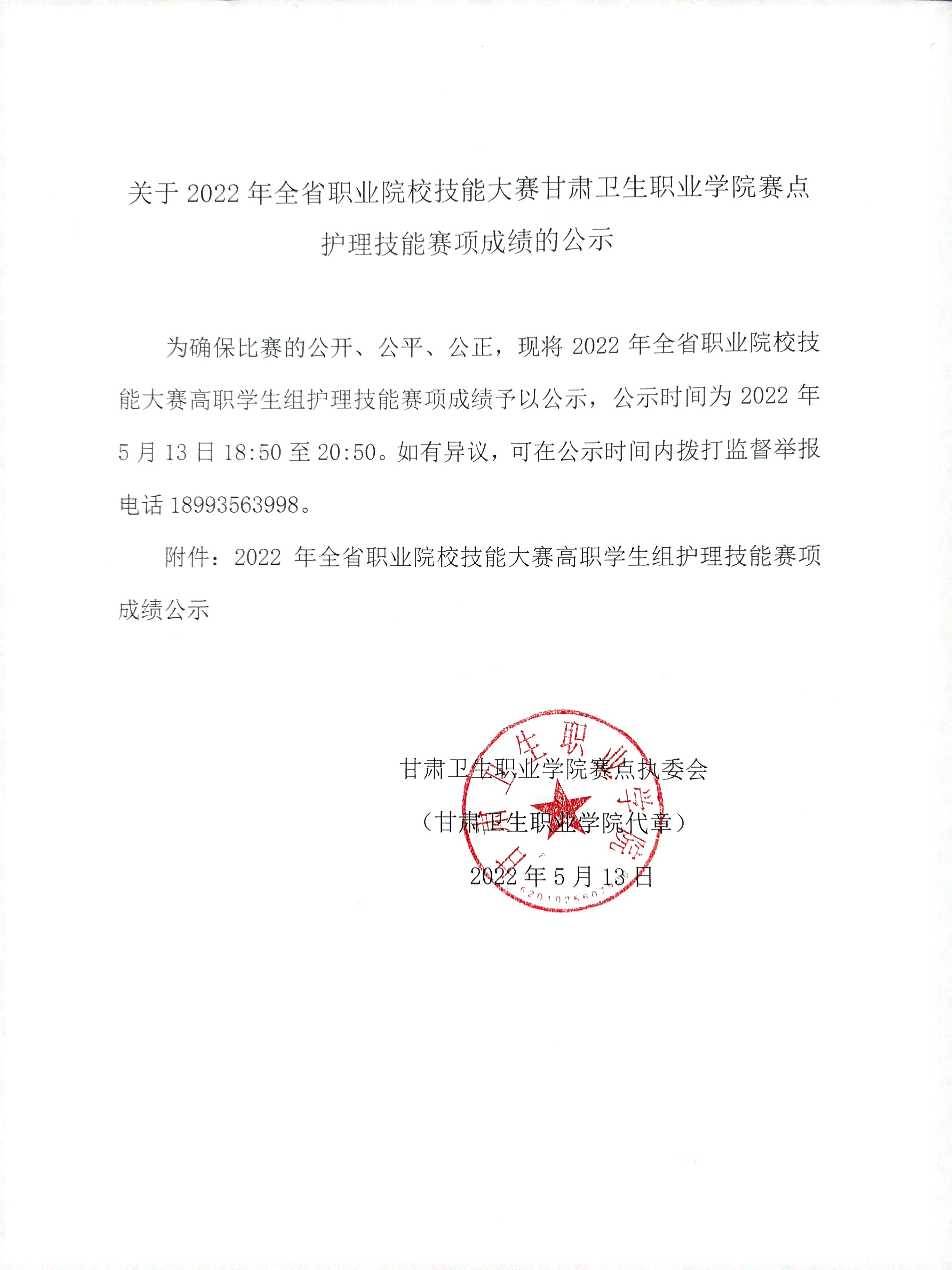 关于2022年全省职业院校技能大赛KY开元集团官网赛点护理技能赛项成绩的公示