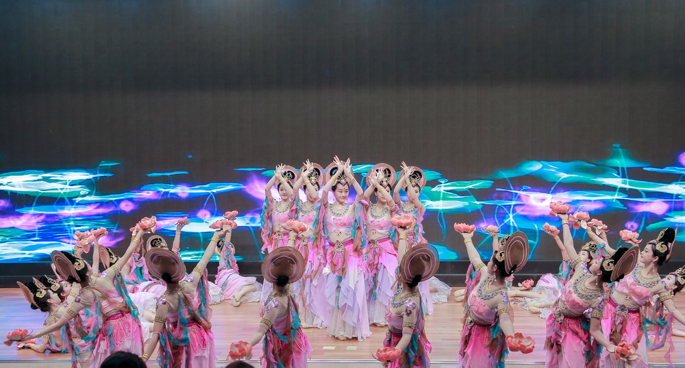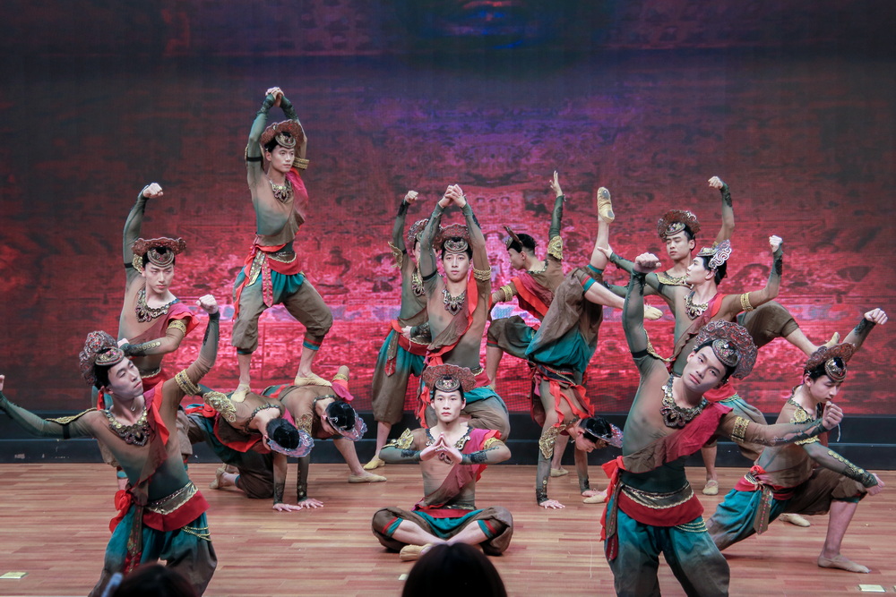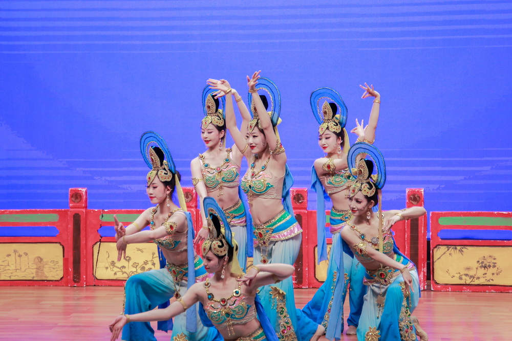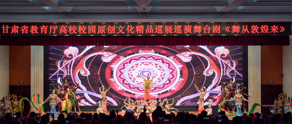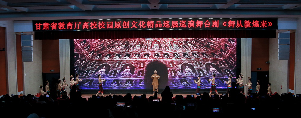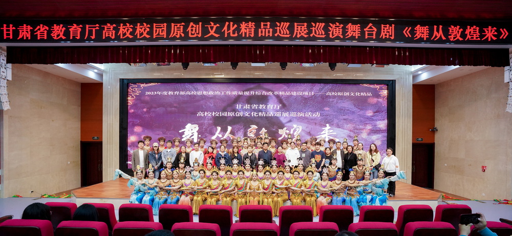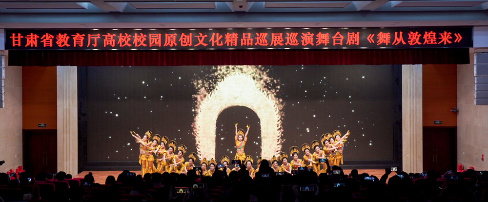 《舞从敦煌来》是我省唯一入选教育部2023年度高校思想政治工作质量提升综合改革与精品建设项目——高校原创文化精品的项目,展示了兰州文理学院在文化艺术教育领域的独特成果。作为一部深入挖掘敦煌文化内涵的原创舞台剧,作品巧妙地将敦煌壁画中的舞蹈元素与现代舞台艺术相结合,展现了一幅幅生动而富有诗意的敦煌舞蹈画卷。
