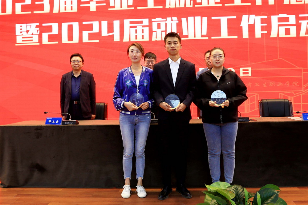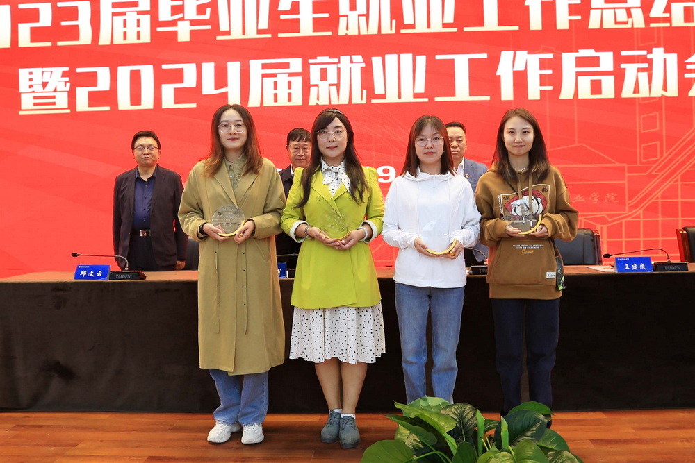 会议2023届毕业生就业工作成绩突出的先进集体和先进个人进行表彰。高博副校长宣读《关于表彰就业工作先进集体和先进个人的决定》,校领导为获得荣誉的集体及个人颁发了奖杯。
