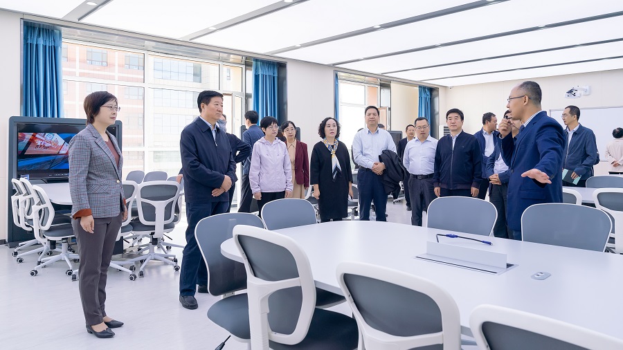 在学校领导的陪同下,省人大常委会党组书记、常委会副主任王玺玉一行实地考察了学校创新数字医学中心。在平板课堂、智慧互动教室、录播教室、虚拟医院和课工厂,工作小组通过听讲解、课堂体验,了解了开元官网“四平台、两中心”的智慧校园建设方案和学校开展信息化教学的情况。