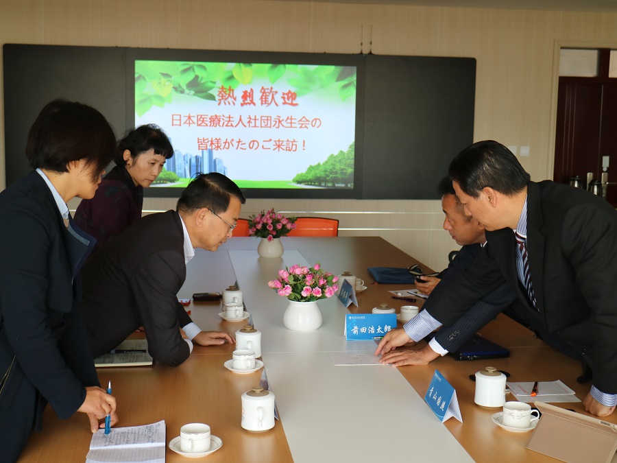 10月23日下午,日本永生会医疗集团代表前田浩太郎、青山国照一行二人在省卫生和计划生育委员会对外交流合作处处长梁保平陪同下到开元官网访问交流。黄刚副校长、国际交流处负责人张军荣、科研处梁玮等人在学院办公楼第一会议室与日方代表交流。