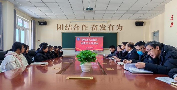 12月27日,医学技术与工程学院召开慰问困难学生座谈会。会议室中暖意融融,学院领导、学生辅导员与困难学生代表齐聚一堂,共话成长,传递温暖。