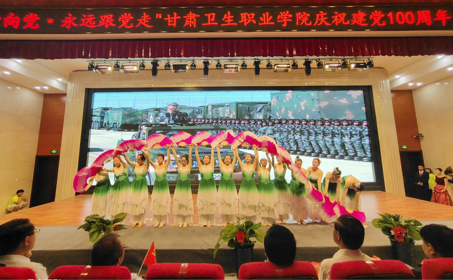 为热烈庆祝中国共产党成立100周年,表达全校师生对伟大的中国共产党的深深祝福,6月24日晚,由校团委、学工部主办,临床护理学院、中医药学院、医学技术学院协办的“青春心向党 永远跟党走”庆祝建党100周年文艺晚会在一号教学楼报告厅举行。校党委书记姜德民,校长任晖,党委副书记刘生肸,副校长康逢民、高博,以及各处室、二级学院负责人、师生代表近500人观看了此次演出。