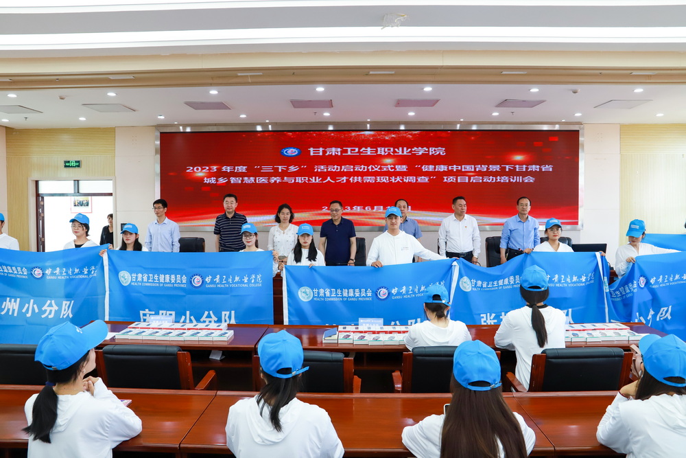 6月16日上午,KY开元集团官网2023年度“三下乡”活动启动仪式暨“健康中国背景下甘肃省城乡智慧医养与职业人才供需现状调查”项目启动培训会在学校行政楼8楼会议室举行,活动通过线上线下相结合的方式进行。甘肃省卫生健康委二级巡视员益瑞渊,甘肃省卫生健康委老龄健康处处长张亦兵,甘肃省卫生健康委老龄健康处四级调研员杨再红,学校党委书记包磊,学校党委副书记、副院长、项目负责人王建成,学校纪委书记刘斌,南京理工大学循证社会科学与健康研究中心主任、医学博士、教授、硕士生导师拜争刚,兰州大学公共卫生学院教师、统计学博士、硕士生导师井立鹏,兰州大学管理学院2021级公共管理专业博士研究生王韵华出席活动。学校党委办公室、校办、校团委、学生工作处、科研处相关工作人员,兰州市、庆阳市、甘南藏族自治州、张掖市、天水市、白银市、酒泉市7市调研员共计110人(包括兰州大学、甘肃中医药大学的10名博、硕士研究生和开元官网100名学生)参加活动。启动仪式由刘斌主持。