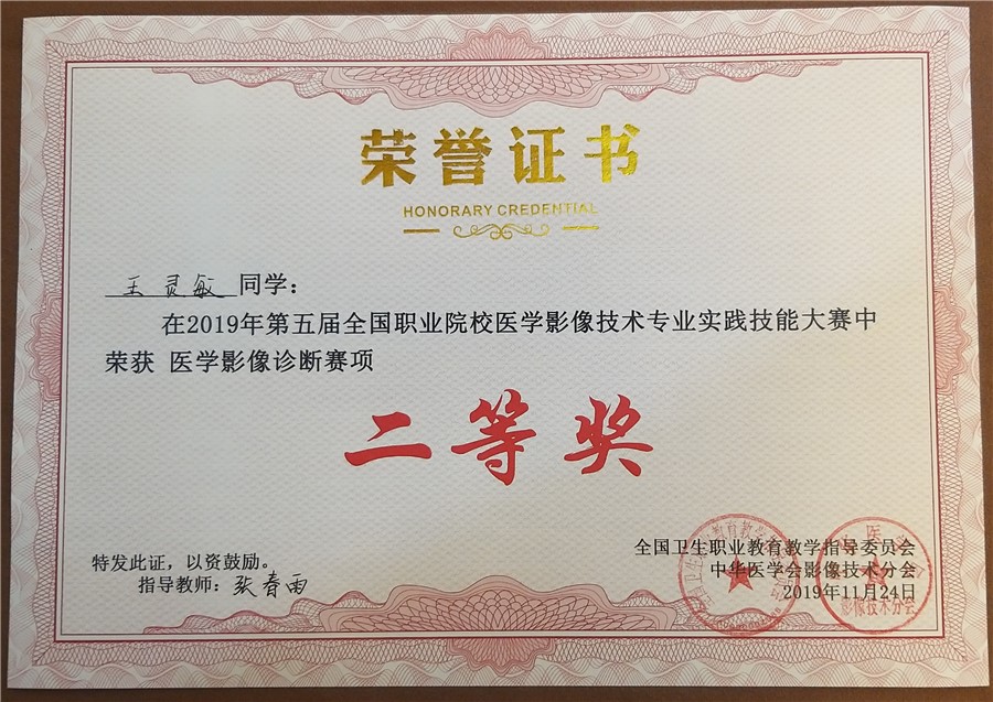 医学技术学院学生在第五届全国职业院校医学影像技术专业实践技能大赛中获影像诊断二等奖