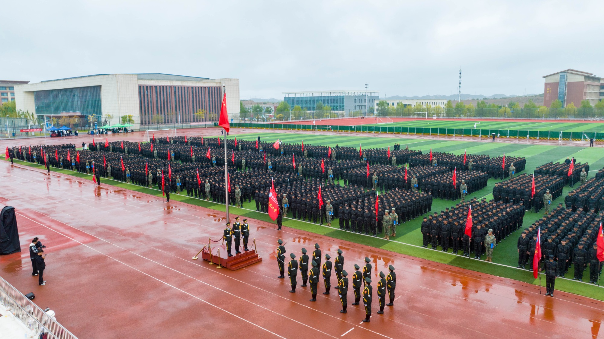 开训仪式结束后,3980名军训学员分6个营、54个连在教官带领下立即投入到军事训练中。他们将在接下来的14天开展队列动作、分列式、军体拳、战术训练、野外拉练、战地救护、内务整理、消防演练等军事训练科目和国防军事知识教学活动,不惧风雨、刻苦训练,团结协作、锤炼本领,高质量完成军训任务。