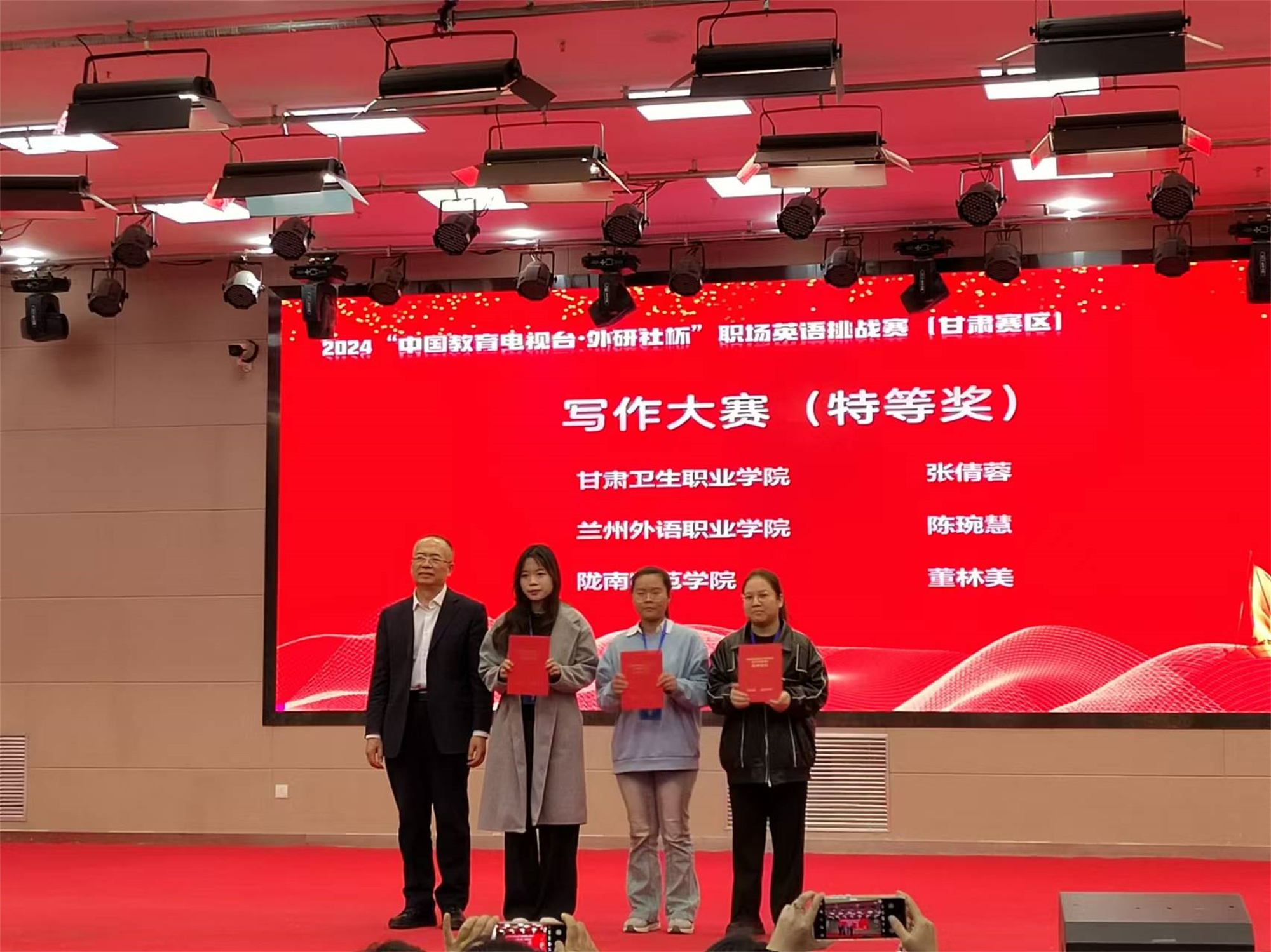 11月3日,2024年“中国教育电视台·外研社杯”职场英语挑战赛(甘肃赛区复赛)在兰州石化职业技术大学成功举办。开元官网学生张倩蓉以总分第一名的成绩获得写作大赛特等奖,高小静老师获优秀指导教师特等奖;汪婧、王筱两名同学获得写作大赛一等奖,魏莉莉、张奕林老师获优秀指导教师一等奖。唐瑞、苏燕妮、程祎楠三名同学获得演讲大赛二等奖,梁瑾、钱磊老师获优秀指导教师二等奖。