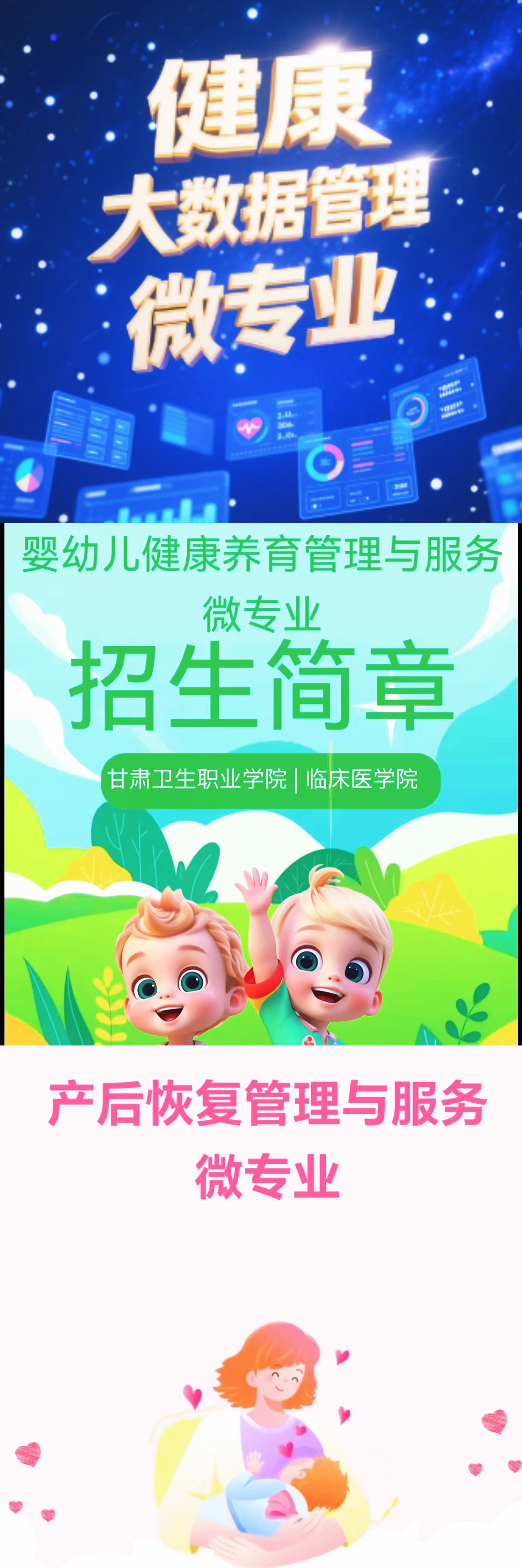 每个微专业均设置5门核心课程,采用线上与线下相结合的教学模式,注重理论与实践融合。其中,健康大数据管理专业聚焦医学与信息技术交叉,着力提升学生在医疗数据采集、分析和管理方面的能力;婴幼儿健康养育管理与服务专业立足社会对婴幼儿照护的现实需求,培养具备系统知识与实操能力的健康管理人才;产后恢复管理与服务专业则面向女性健康领域,聚焦产后康复服务技能,满足产业发展对专业人才的迫切需求。