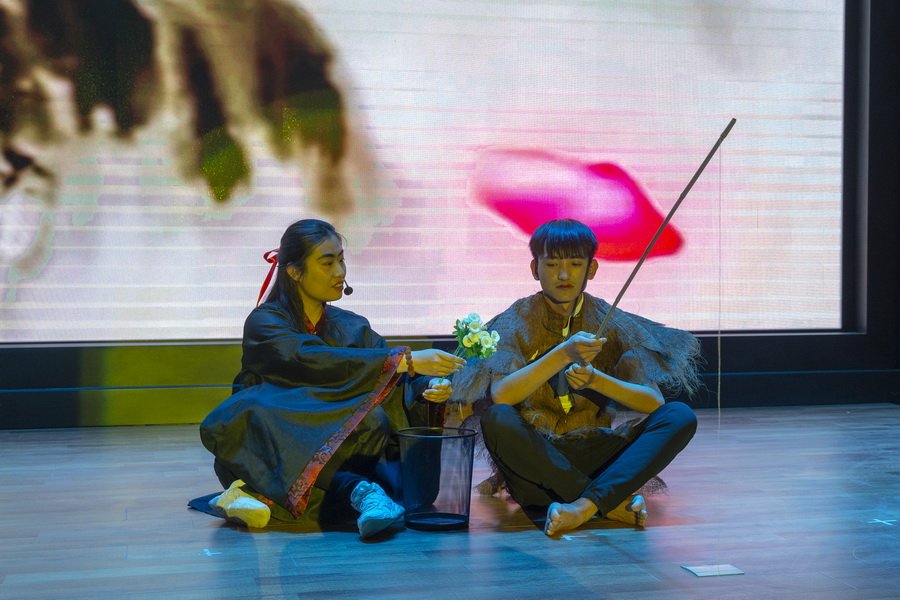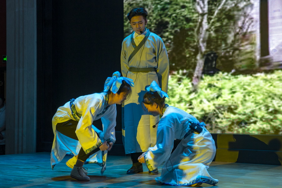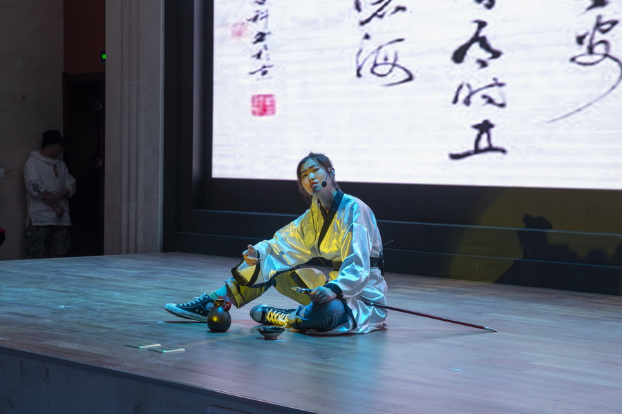 情感篇是由兰州现代职业学院学生展演,内容是一只蟋蟀的故事,那只蟋蟀跳过夫子的课堂,是夫子诲人不倦的谆谆告诫;藏在青砖角瓦下,是与两位阔别好友斗诗的钢翅鼓动金风的壮志豪情;飞到院中,落在树下看星光,是爷爷考教小孙女后的浓浓思乡之情;最后,那只蟋蟀跳进了流沙河的诗中,歌唱出中国人有中国人的心态,中国人有中国人的耳朵。