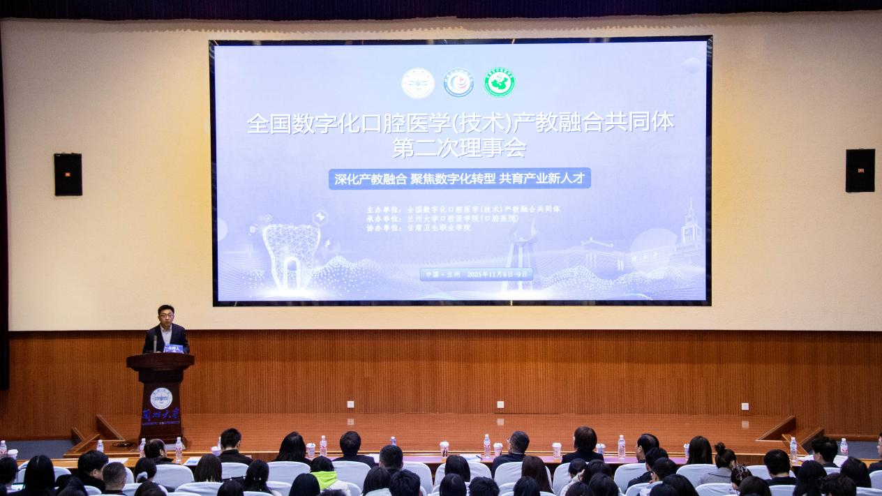 2025年11月9日下午,全国数字化口腔医学(技术)产教融合共同体第二次理事会在兰州大学顺利举行。行业主管部门、各理事单位及企业代表齐聚,围绕产教融合与行业发展主题,共商数字化口腔医学(技术)产教融合实践路径。