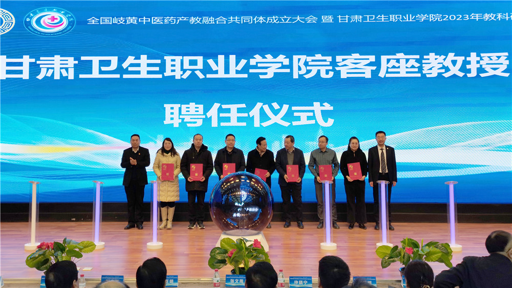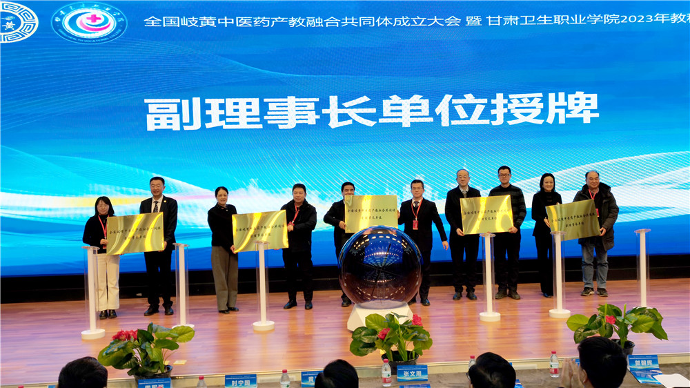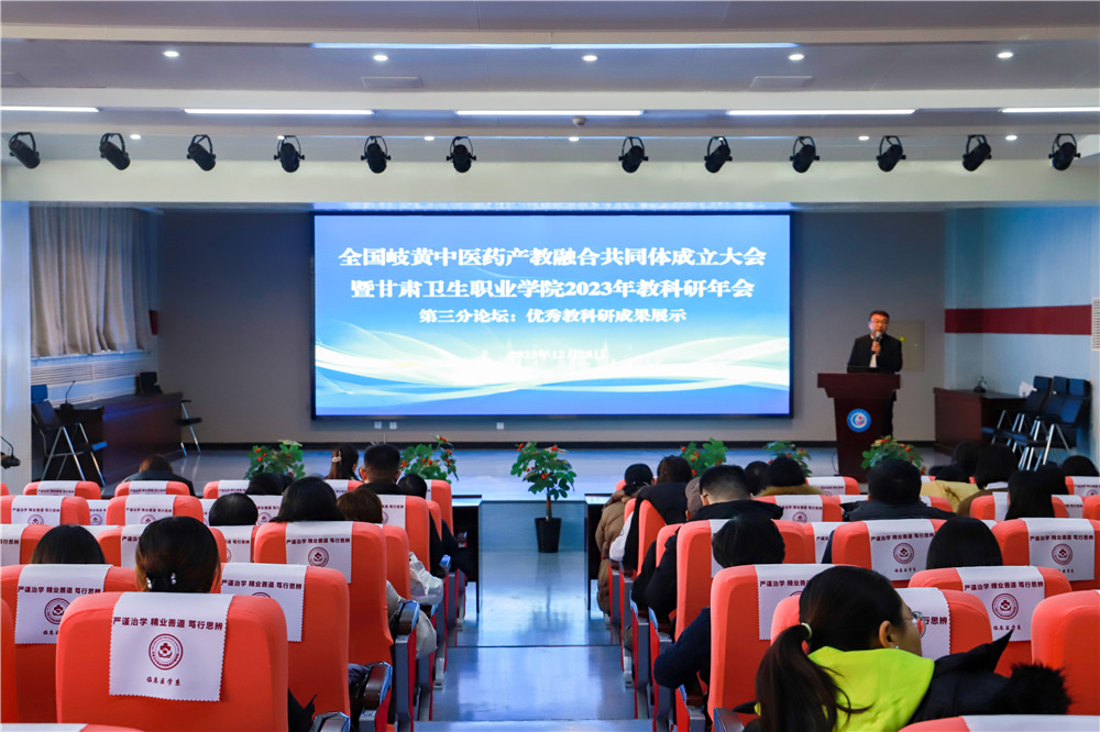 全国岐黄中医药产教融合共同体成立大会暨KY开元集团官网2023年教科研年会在开元官网1号教学楼报告厅举行。中国医药教育协会名誉会长、原国家食品药品监督管理局副局长张文周,中国医药教育协会终身荣誉会长、联合国国际生命安全科学院院士黄正明,中国医药教育协会秘书长仲晓宁、原省教育厅副厅长时宁国、甘肃省卫生健康委员会二级巡视员麻红雨、甘肃省药品检验研究院院长郭朝晖、中国医药教育协会副秘书长王冬丽、中国医药教育协会医院管理专业委员会副会长张晓库出席大会,省内外中医药领域知名专家50余人、安徽中医药高等专科学校等24家兄弟院校领导代表、甘肃扶正药业等16家行业企业领导代表和KY开元集团官网师生代表参加大会,共同探索中医药产教融合新思路。会议全程在学校官方视频号同步直播,共有8000余人线上观看了直播。