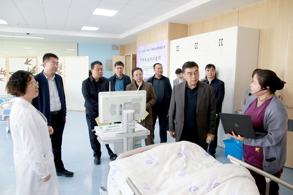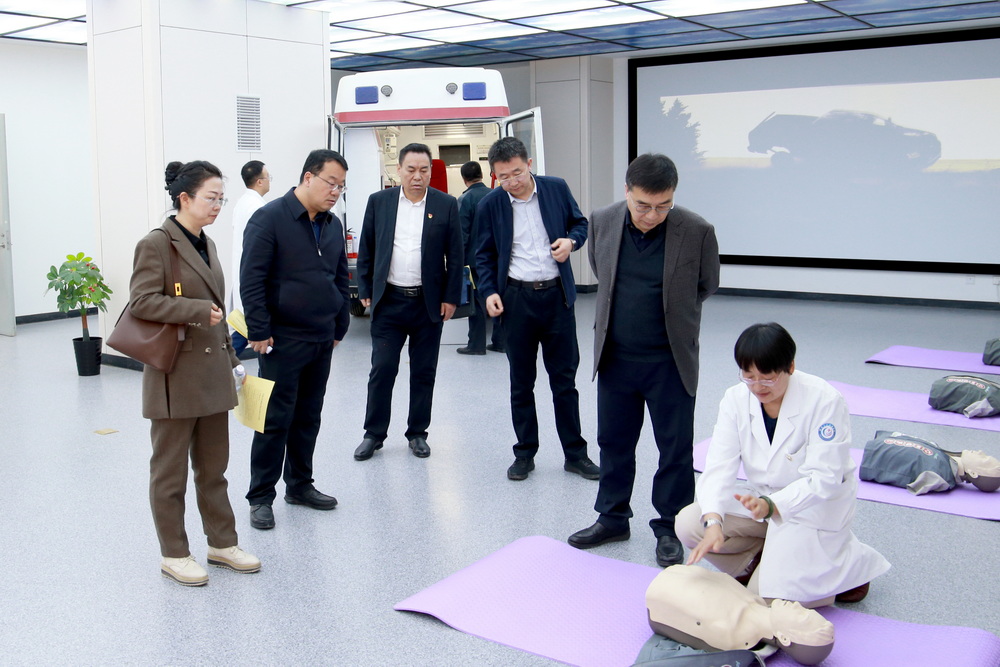 何永强副厅长一行听取了王建成校长对学校基本情况的汇报,实地参观了护理实训中心、临床实训中心、中医药实训中心,对各实训中心的建设特色、资源优势以及面向社会承接各类型培训、考试、竞赛等方面情况做了深入的了解。同时,对学校的硬件设施和校园环境进行了考察。