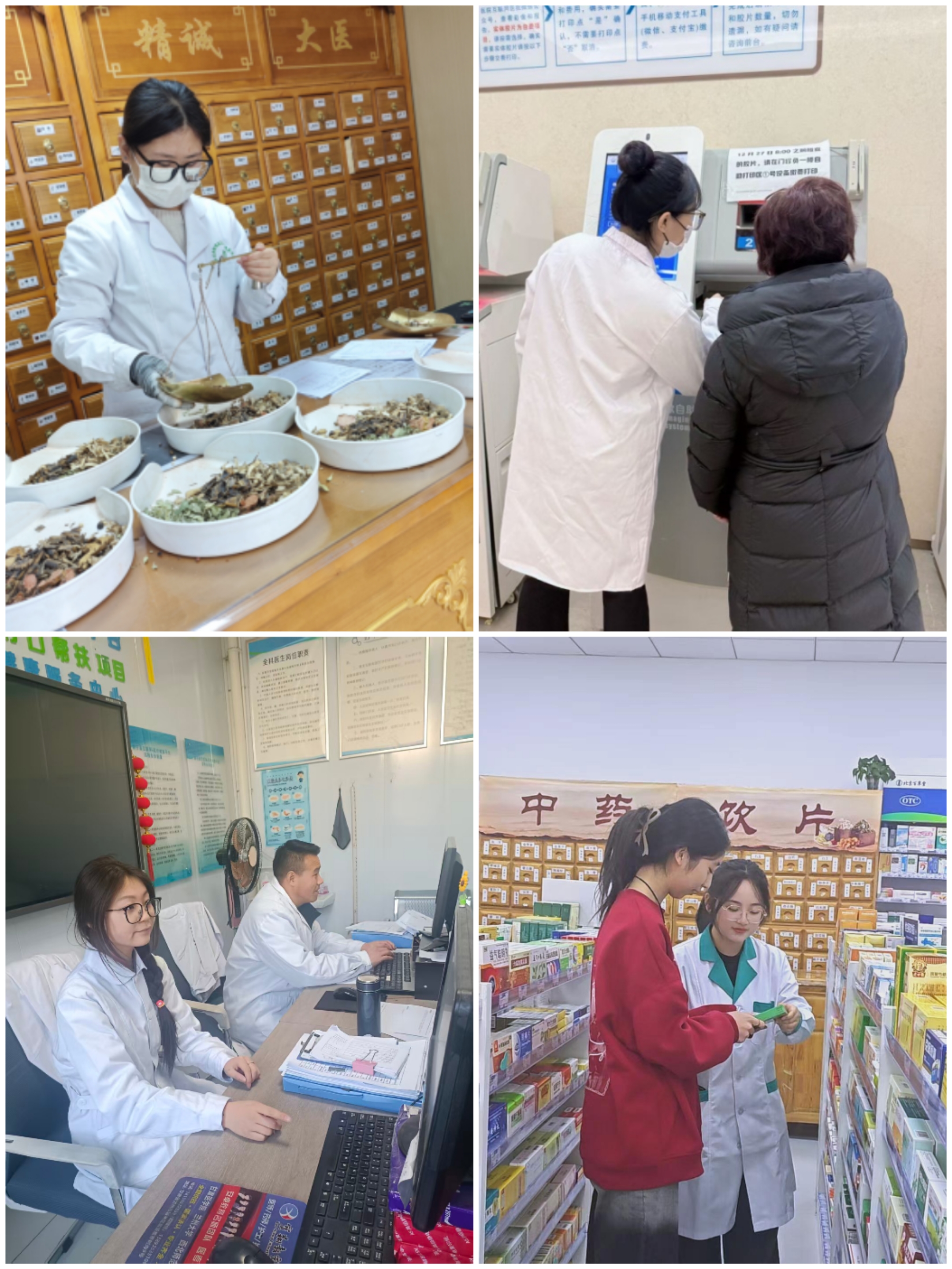 更多学生则走进卫生院、药房与诊所,将专业与实践深度融合。2024级刘姗姗、田艳霞、雷淇蓉等多名同学,分别在康县、甘州区、山丹县等地的基层医疗机构,协助药师进行药品调配、用药咨询及健康宣教。同学们深刻体会到,药学工作不仅需要扎实的专业知识,更需细心、耐心与责任心。