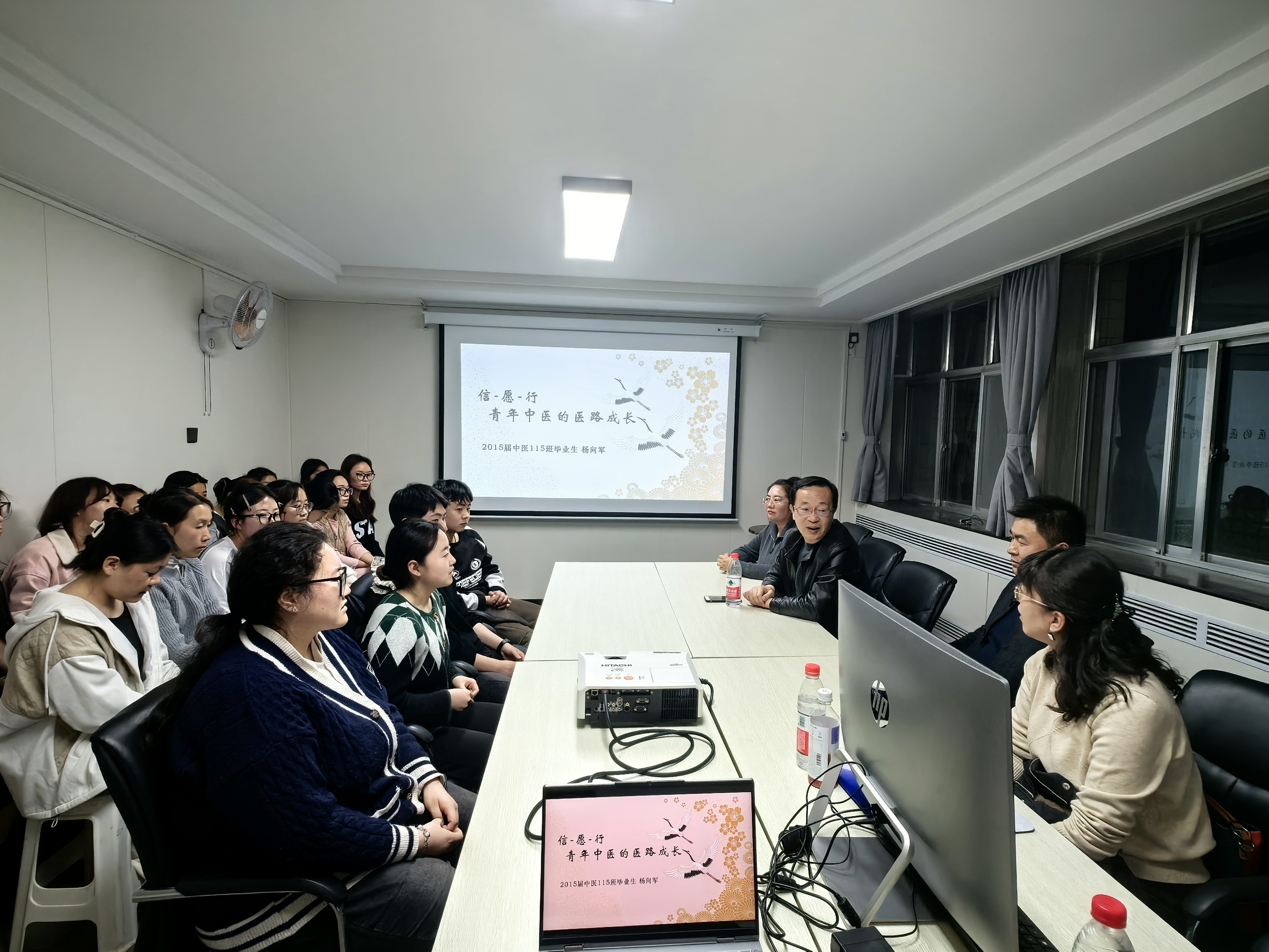 为促进毕业生合理规划职业生涯,树立正确的就业观和人生观,中医学院于3月11日晚在长城宾馆住宿点召开了优秀校友经验分享会。本次分享会邀请杨向军作为主讲人,杨向军是2015届中医学专业毕业生,现在家乡创办中医馆,扎根基层,服务百姓,日接诊量100余人。