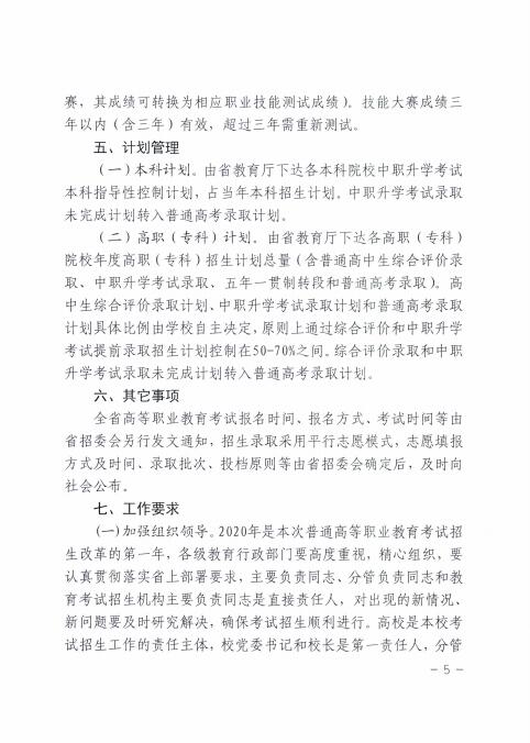 甘肃省教育厅关于印发《2020年全省高等职业教育考试招生工作实施方案》的通知