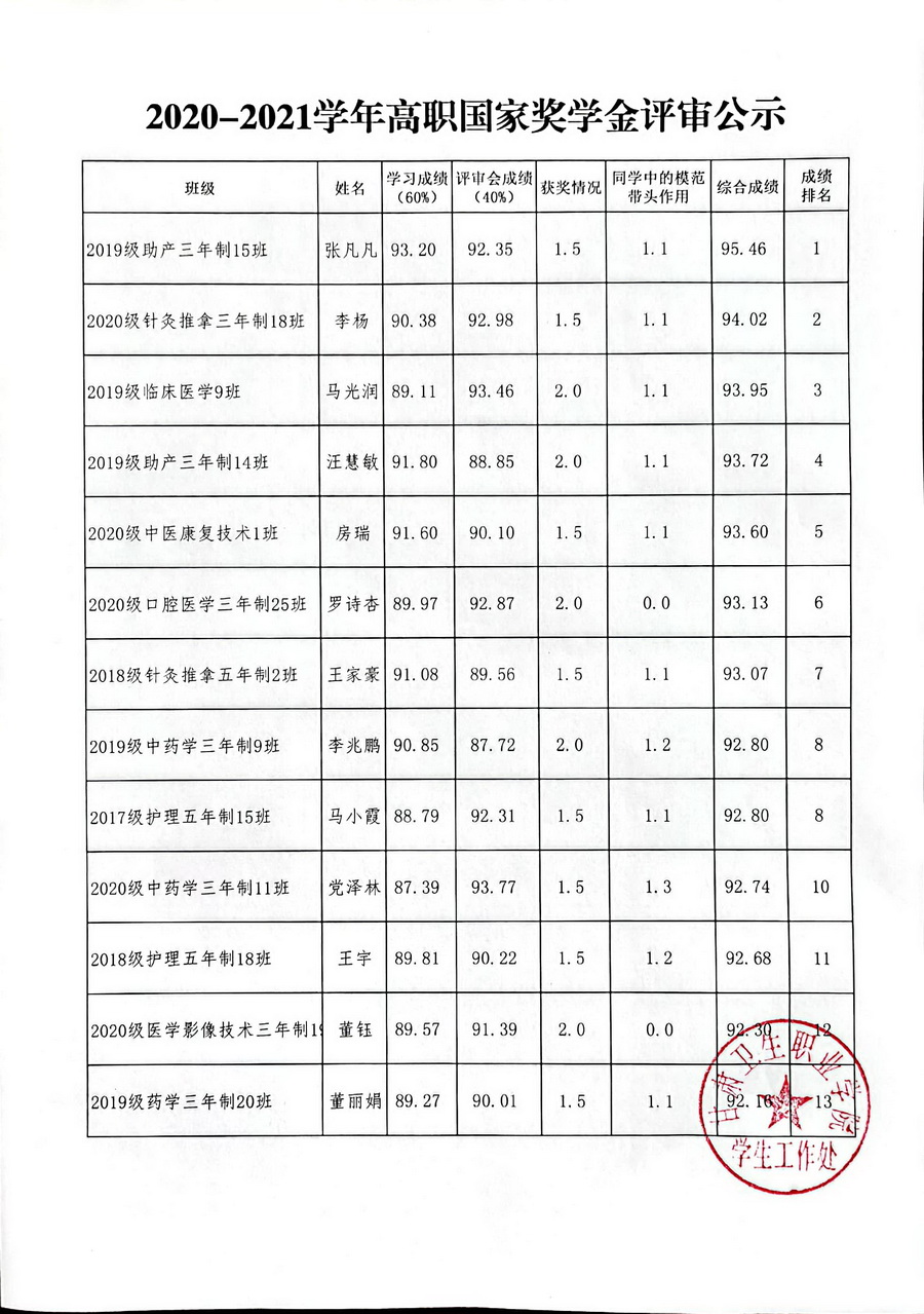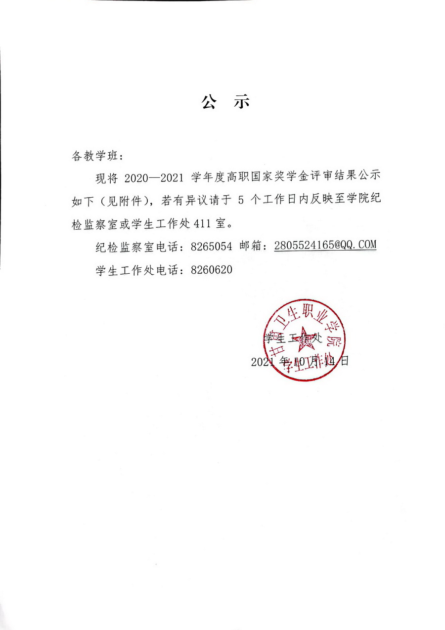 KY开元集团官网2020-2021学年高职国家奖学金公示