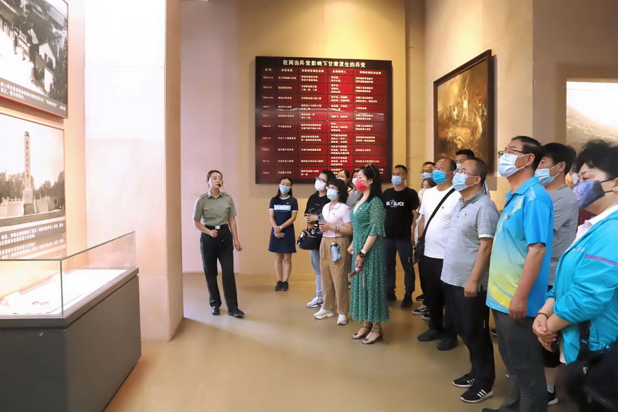 在两当兵变纪念馆,面对鲜艳的党旗和庄严的英雄浮雕,全体党员重温入党誓词。随后,在讲解员的引导下,全体教师分别参观了“两当兵变事件”、“红色革命传承”和“习仲勋光辉一生”展厅。大家缓缓移步,认真听取讲解,不时驻足凝视,深切缅怀习仲勋等老一辈革命家的丰功伟绩,真切感受党的初心使命,汲取砥砺前行、接续奋斗的强大力量。