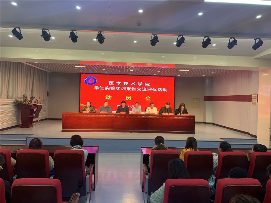 为积极贯彻落实《医学技术学院实验实训管理办法》,加强实验实训教学规范化管理,提高实践教学质量,培养合格的高水平技能型卫生人才,同时为进一步完善和修订学院《学生实验实训报告手册》做好调研工作,医学技术学院开展了学生实验实训报告交流评优活动。11月17日下午,活动动员会在临床医学系报告厅举行,学院领导、各教研室主任、全体评委、活动工作人员和各专业240名学生代表参加。会议由学院副院长吕荣光主持。