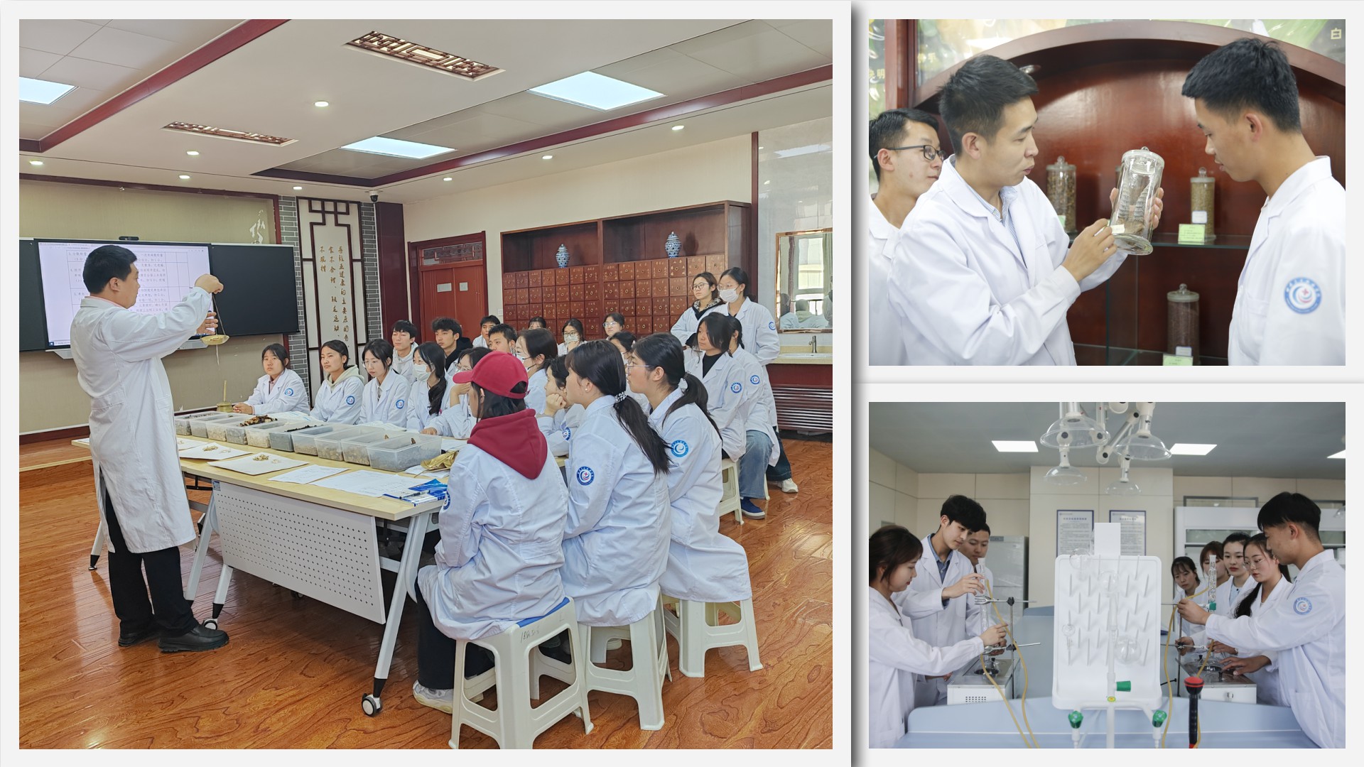 中药学专业建设有中药标本馆,有麝香等贵重标本50余种、腊叶标本400多种、浸制标本500个、生药标本5000余瓶,并建设有中药鉴定实训中心(中药性状鉴定实训室、中药理化鉴定实训室和中药显微鉴定实训室)、中药炮制实训中心、中药制剂实训中心、中药药理实训中心、实体药房实训中心、模拟生产实训中心等,设备先进、齐全,集教学、培训、职业技能鉴定和科普教育于一体,满足中药专业的校内实践教学。