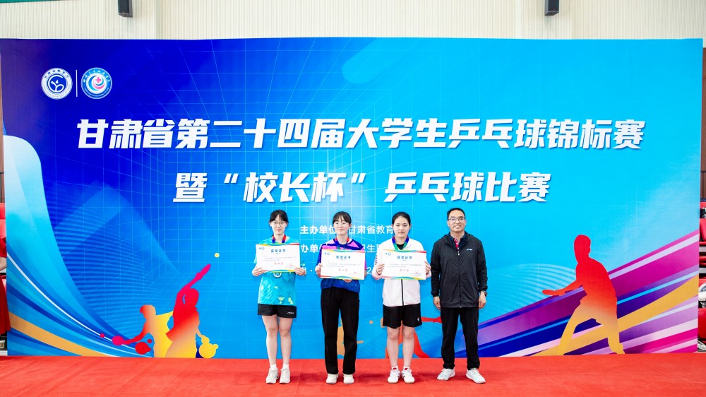 西北民族大学詹卓雅、兰州交通大学张闻珈、天水师范学院张唯获学生乙组女子单打前三名。