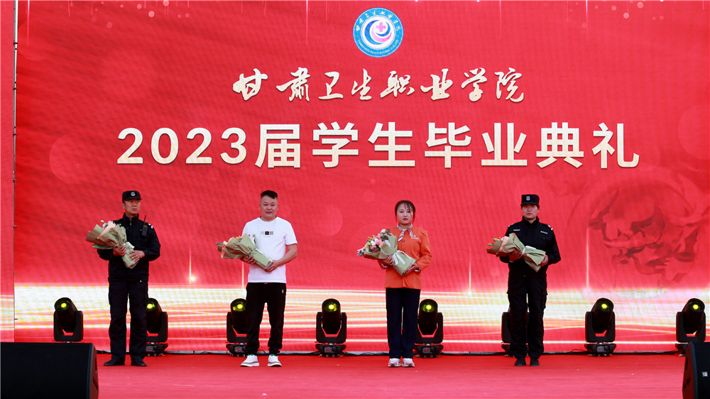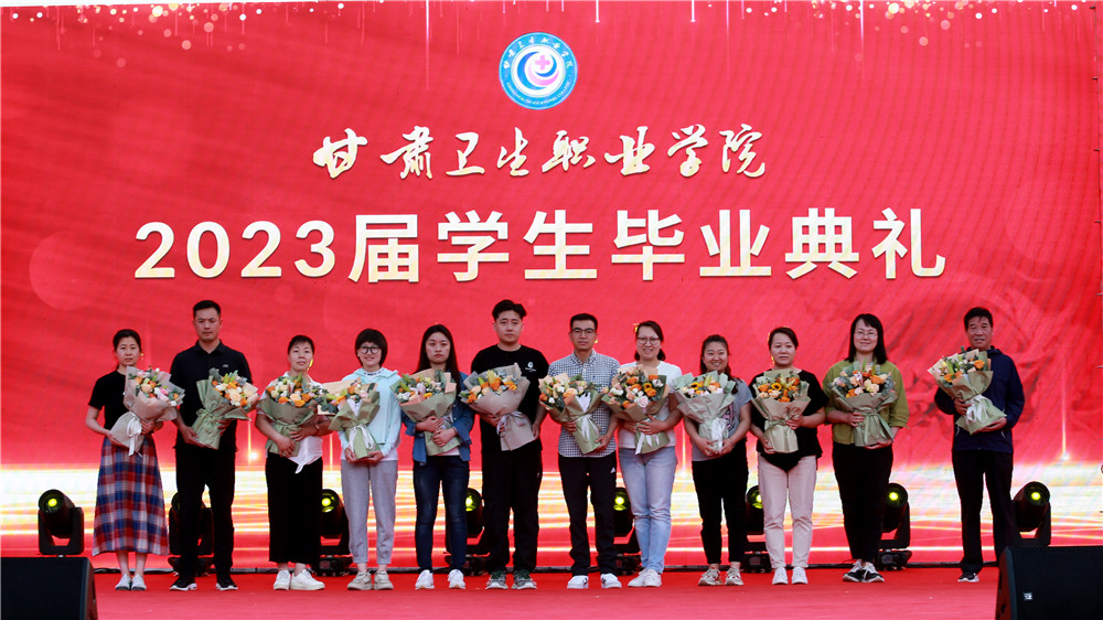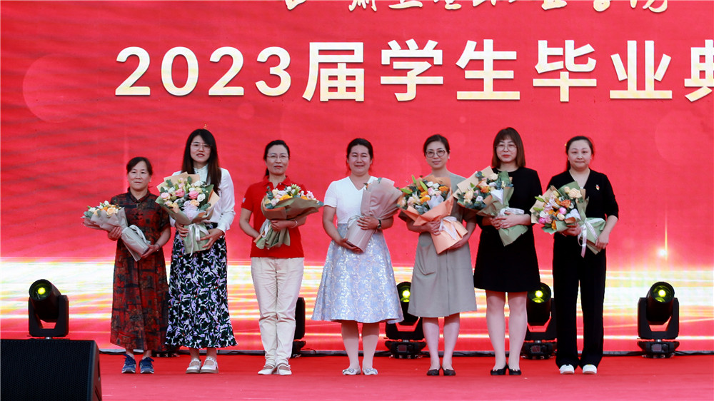 伴随着音乐声,毕业生代表为任课教师、毕业班辅导员、校园服务人员送上了鲜花,表达着对学校三年来的所有感谢。