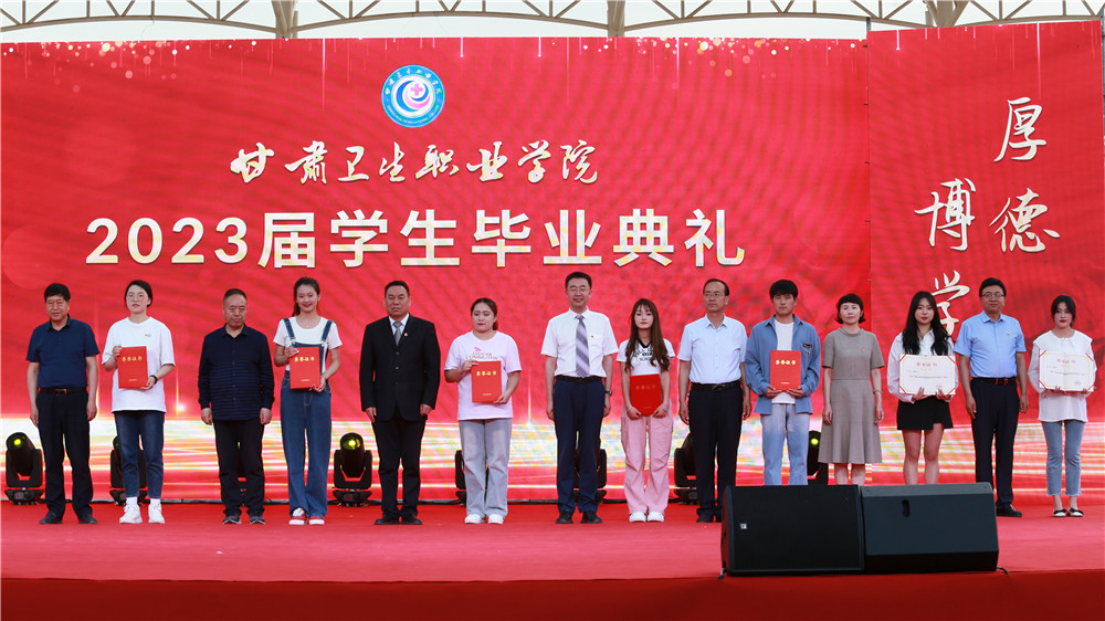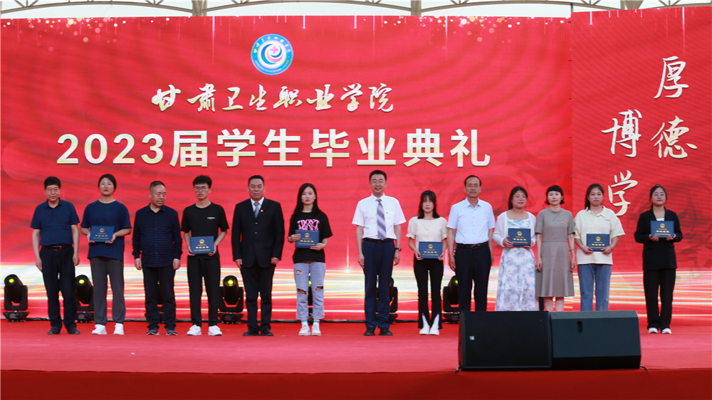学校领导为毕业生代表颁发了毕业证,为获得表彰的学生代表颁发了荣誉证书。
