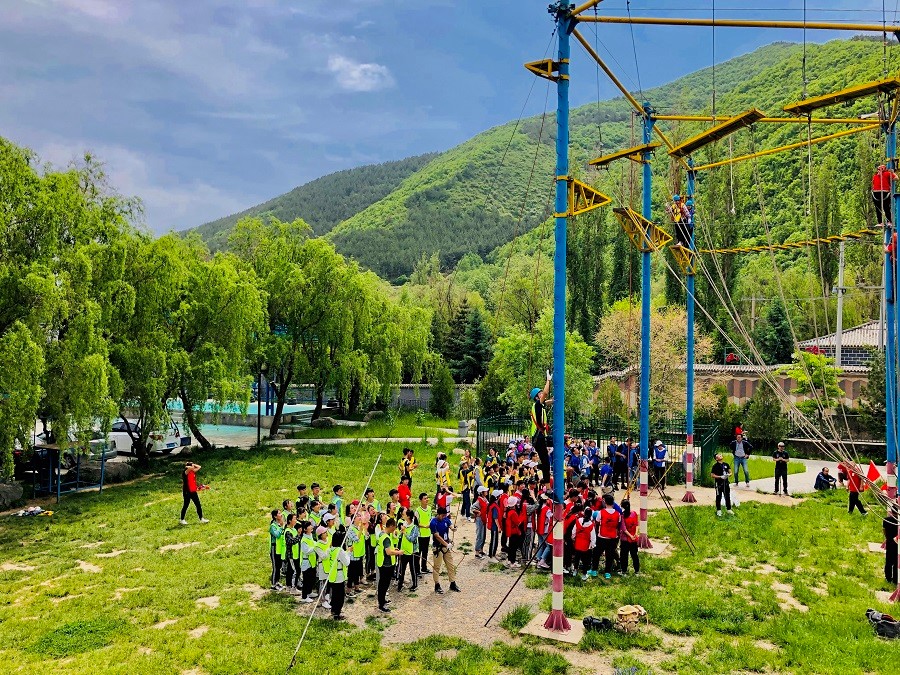 活动伊始,来自兴隆山基地的专业教练们将参训学生随机分成五队,各队分头行动,在极短的时间内完成了队伍建设、团队破冰。随后的时间内,各个队伍在教练的引导下,高质量完成“高空断桥”、“汉诺塔”、“流程管理”、“生命动力圈”等多个拓展任务。过程中,各队成员都以最饱满的精神态度,最积极的表现完成各项任务,成员们都在配合中找到了默契,在汗水中结下了友谊,在每项任务中展现了自己的热情、活力和对队友的宽容与鼓励。整个活动充满了加油声,处处可以感受到团队合作的力量。