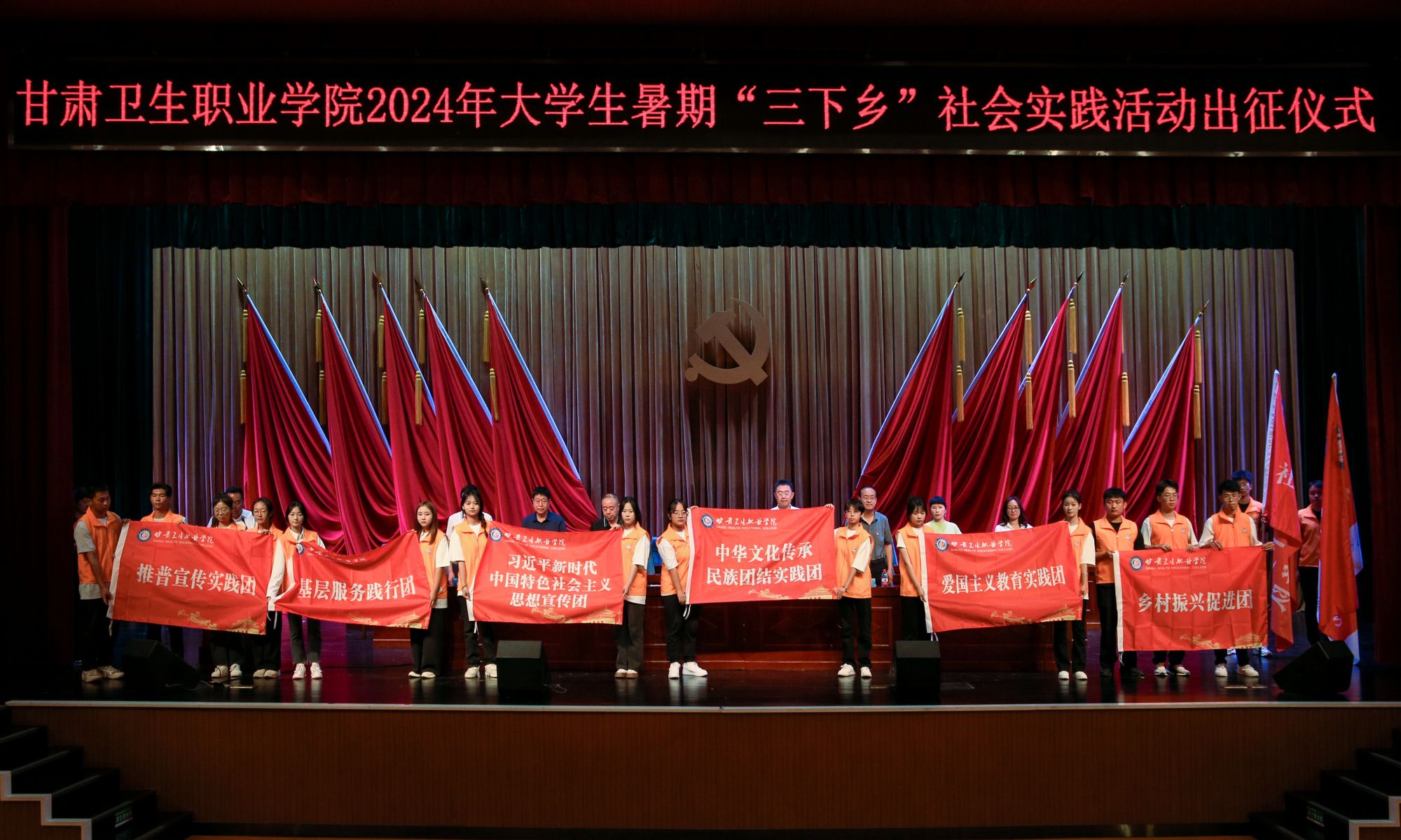 7月5日下午,KY开元集团官网2024年大学生志愿者暑期文化科技卫生“三下乡”社会实践活动出征仪式在职教园区共享区报告厅举行。学校党委书记包磊,党委副书记、校长王建成,党委副书记毕效武,纪委书记刘斌,副校长高博、张军荣、邱文云、杨频,以及校团委、学生处、附属医院、各二级学院相关负责人及工作人员,“三下乡”社会实践活动全体志愿者等50余人参加了本次出征仪式。
