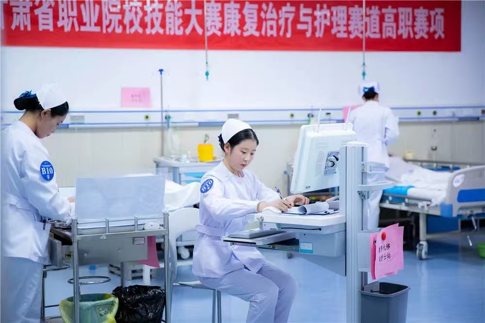 学校本次承办了医药生产与经营、康复治疗与护理赛道中、高职赛项,吸引了全省136支队伍的489名选手同台竞技。赛场上,选手们精神饱满、沉着冷静,围绕医药卫生领域的实际需求,展示了复杂的临床工作场景、扎实的临床技能和亮眼的创新思维;裁判员们秉持公平、公正、公开原则,严格按照竞赛标准精准评判、细致记录,确保赛事结果客观权威;工作人员与志愿者全程坚守岗位,以高效的服务为赛事顺利推进保驾护航。
