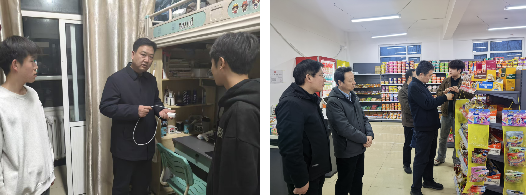 近日,党委书记令军辉,党委副书记、院长王建成带队深入学生食堂、宿舍、“一站式”学生社区、辅导员办公室、校园超市、各二级学院,与师生座谈交流,了解师生开学工作学习生活情况,慰问一线师生员工,检查食品、消防、水电设施设备安全措施落实、运行和开学教学等工作安排落实情况。