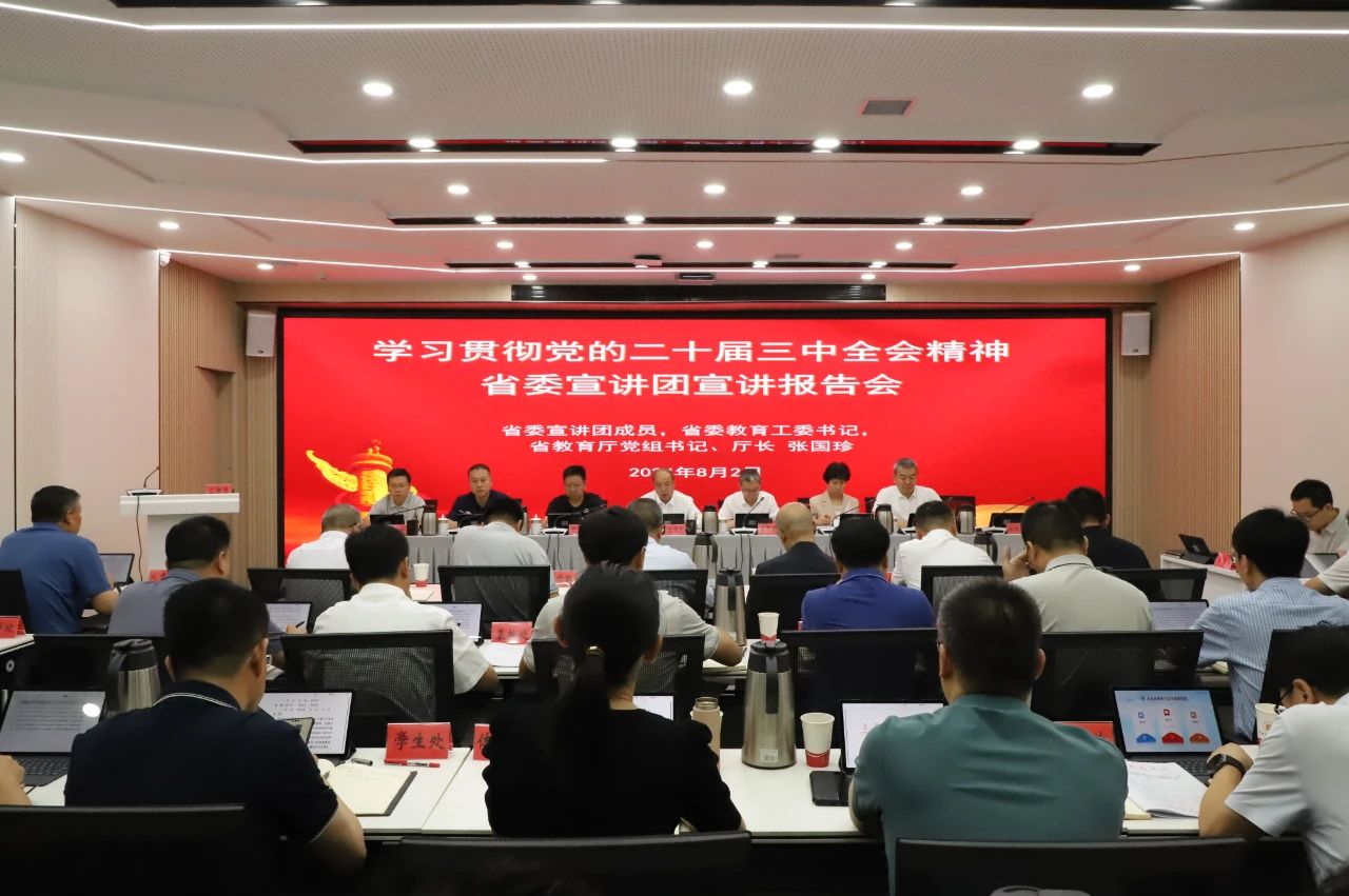 近日,学习贯彻党的二十届三中全会精神省委宣讲团在教育系统宣讲。省委宣讲团成员,省委教育工委书记,省教育厅党组书记、厅长张国珍作宣讲报告。学校在五里铺暑期办公点设分会场,在家校领导、各党总支书记、党务部门负责人参加宣讲会。