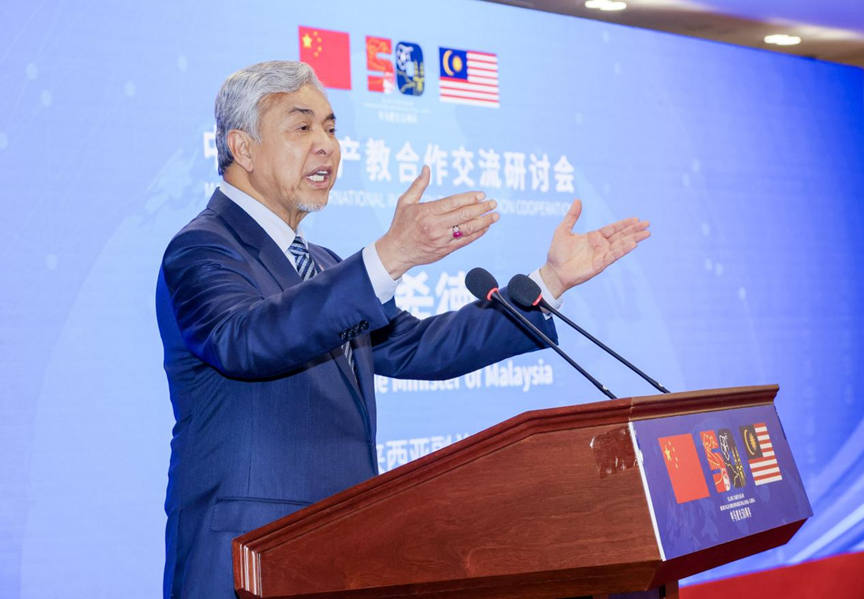 会上,马来西亚副总理扎希德发表讲话,他表示马来西亚高度重视与中国开展职业教育合作,自2023年11月与中国副主席韩正会谈并宣布成立中马产教国际合作中心(MCI)以来,各项工作取得了可喜的成果,到2024年底,马来西亚政府将资助2000名马来西亚技能人才前往中国接受就业前培训,未来期待与各方携手尽快落实中马双学历合作办学项目。