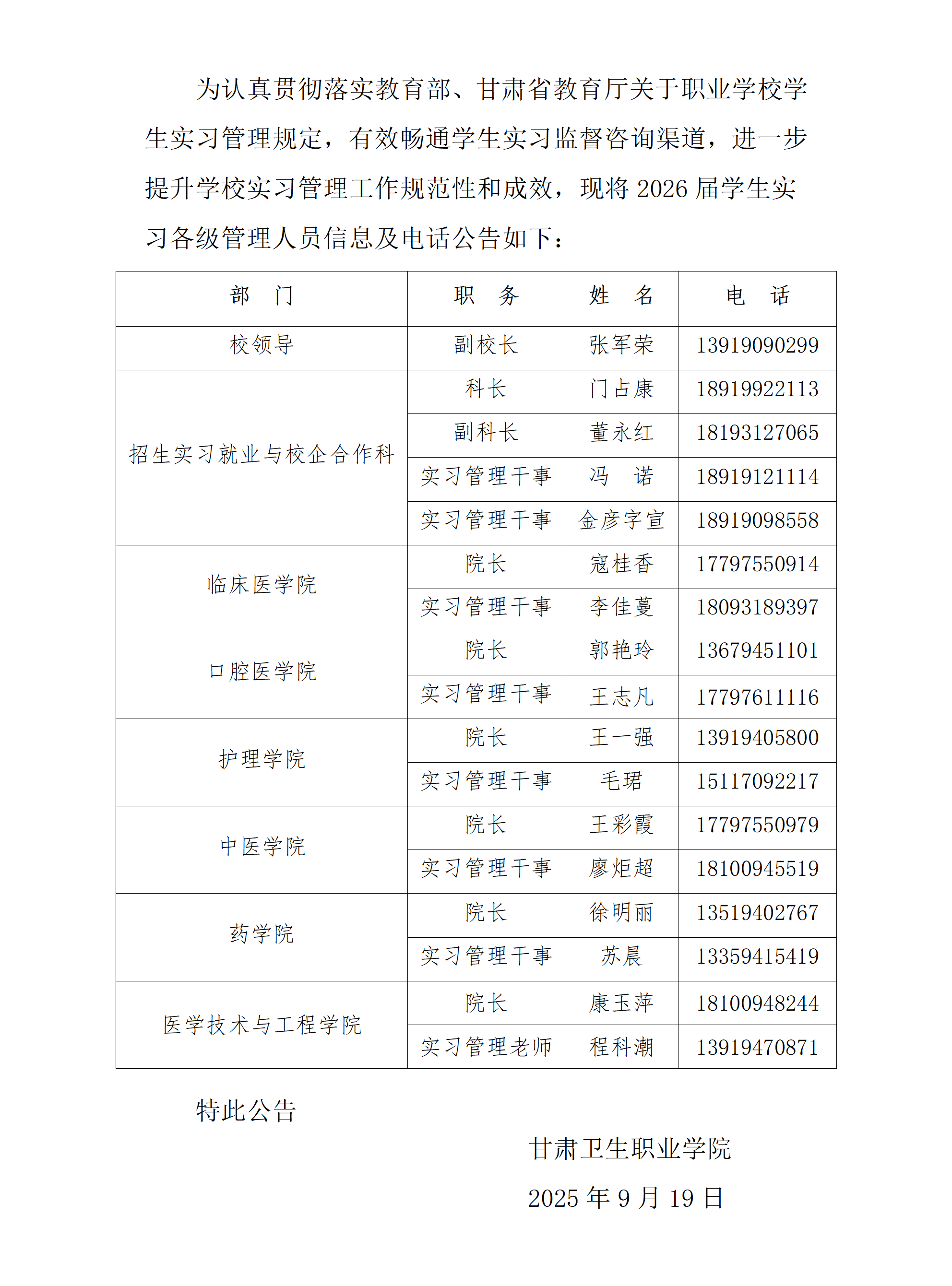 关于公布2026届学生实习监督咨询电话的公告
