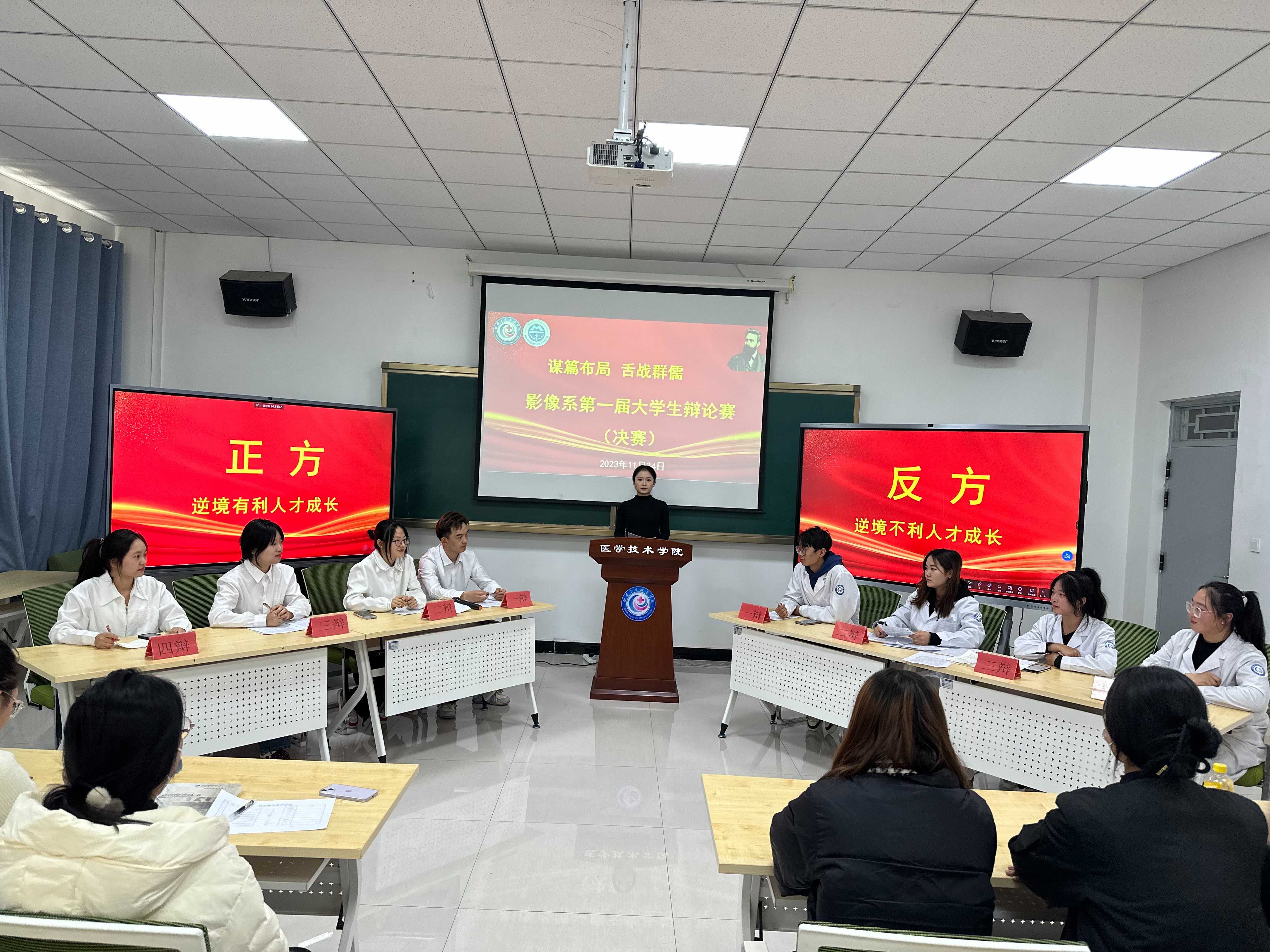 “谋局布篇、舌战群儒”辩论赛初赛甄选出了8位最佳辩手晋级决赛,辩论赛展现了饱满热情、奋勇争先的精神面貌,充分体现了语言表达的精彩性、逻辑思维的严谨性、临场应变的灵活性,锻炼了学生的攻辩能力,增强了团队精神。