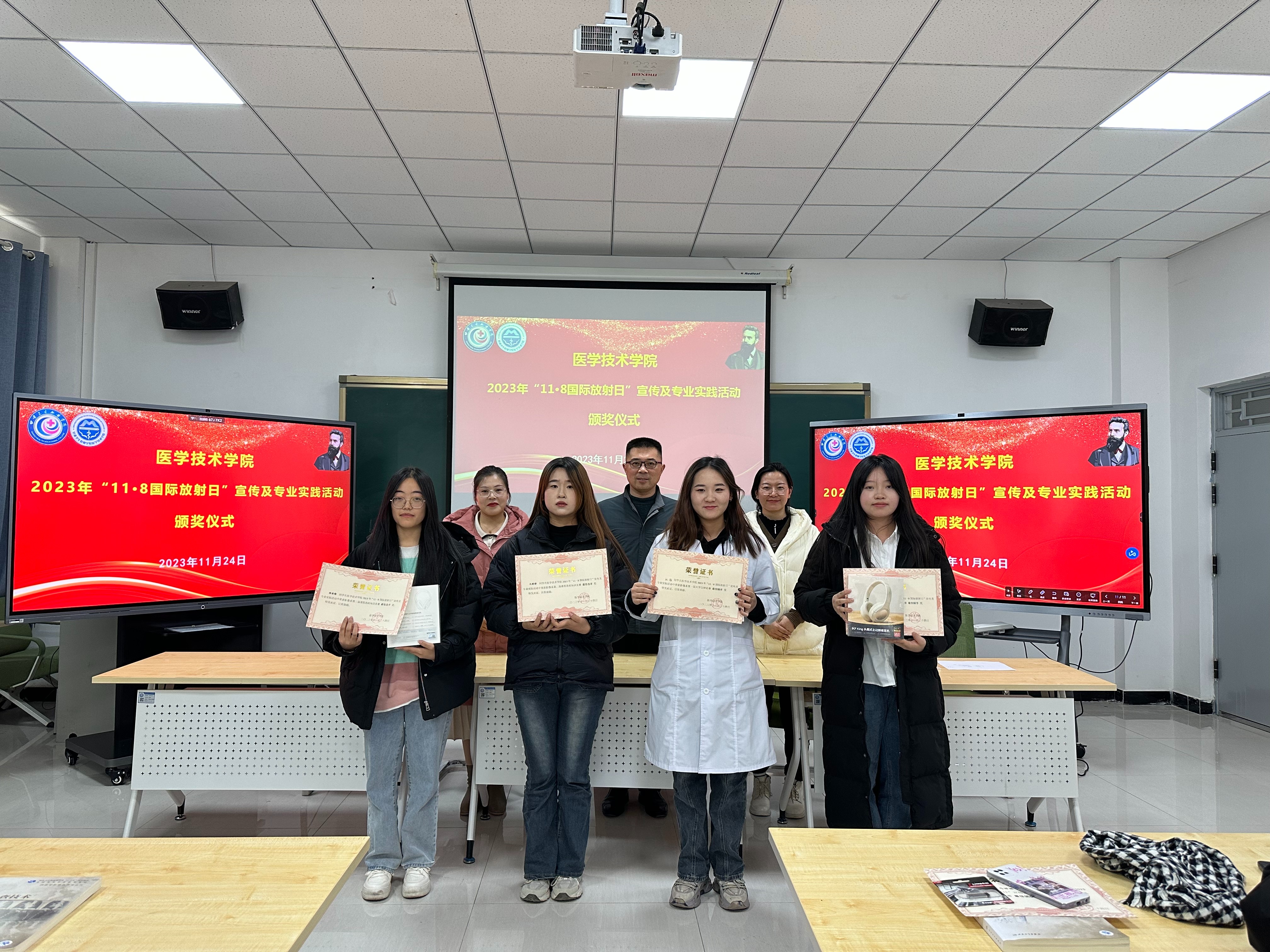 “11·8国际放射日”是全体奋战在医学影像岗位工作者的节日,为展现医学影像技术专业学生的良好精神风貌和青春责任担当,提高医学影像技术专业学生对医学影像专业的认知,加强专业思想教育,增强学生学习动力,促进学生对医学影像专业的热爱,学院于11月8日-24日开展了2023年“11·8国际放射日”系列主题宣传实践活动。