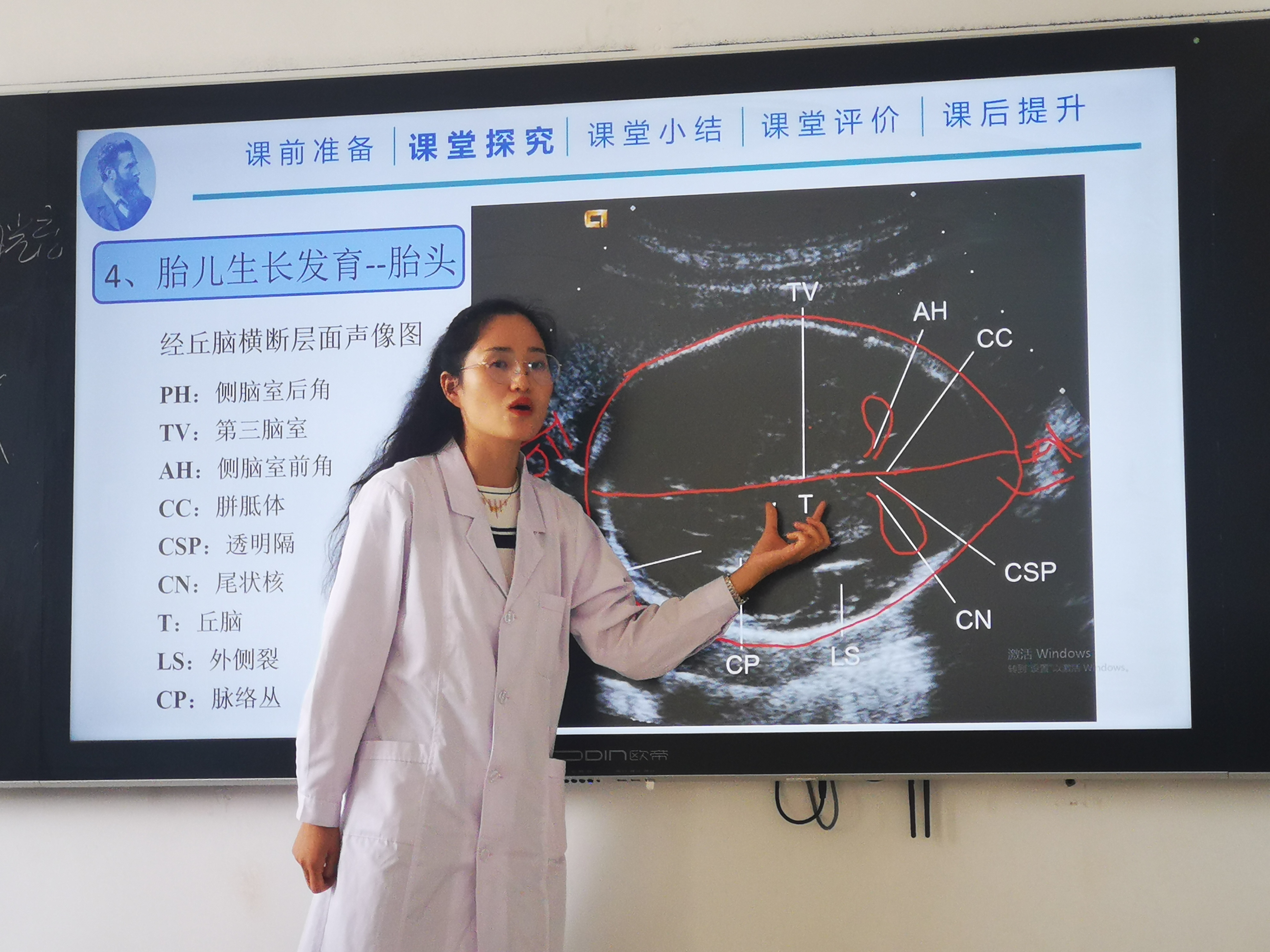 ♦ 吴雪老师带领同学们在超声实训室学习并讲解《超声检查技术》理论教学 ♦