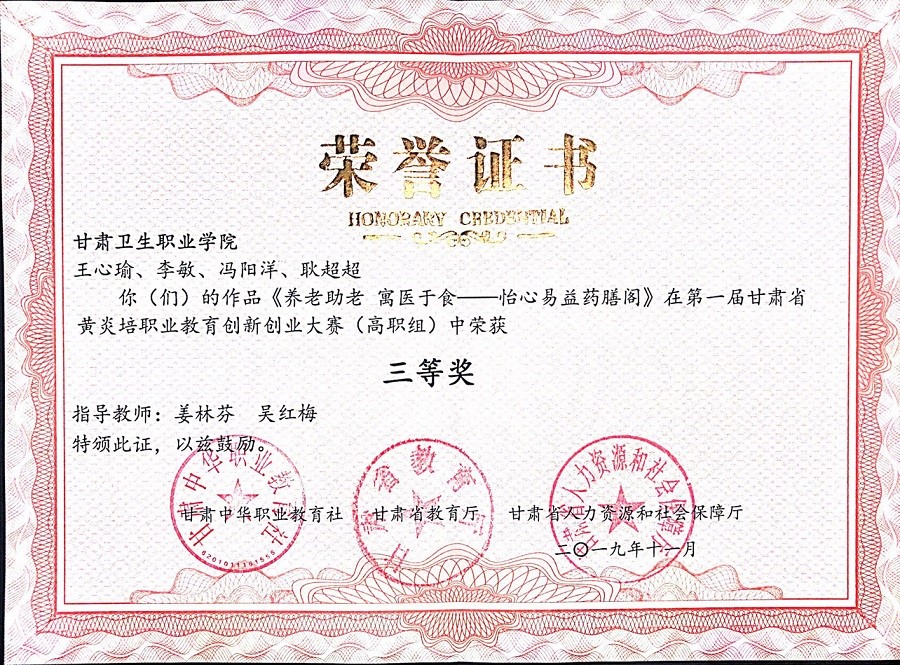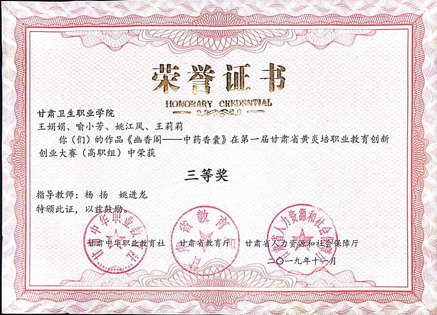 为深入贯彻落实国务院《关于大力推进大众创业万众创新若干政策措施的意见》和《国家职业教育改革实施方案》精神,进一步推动“大众创业、万众创新”,促进职业院校创新创业教育发展,11月7日至9日,由甘肃中华职业教育社、甘肃省教育厅、甘肃省人力资源和社会保障厅主办,兰州资源环境职业技术学院承办的第一届甘肃省黄炎培职业教育创新创业大赛在兰州资源环境职业技术学院举行。本次大赛采取专家初评、现场决赛的竞赛形式。经校内初审、校外创业专家组评审,学校有两个项目入围了现场决赛答辩阶段。最终,开元官网王心瑜团队的“养老助老,寓医于食——怡心易益药膳阁”项目和王娟娟团队的“幽香阁——中药香囊”项目获得大赛高职组三等奖。