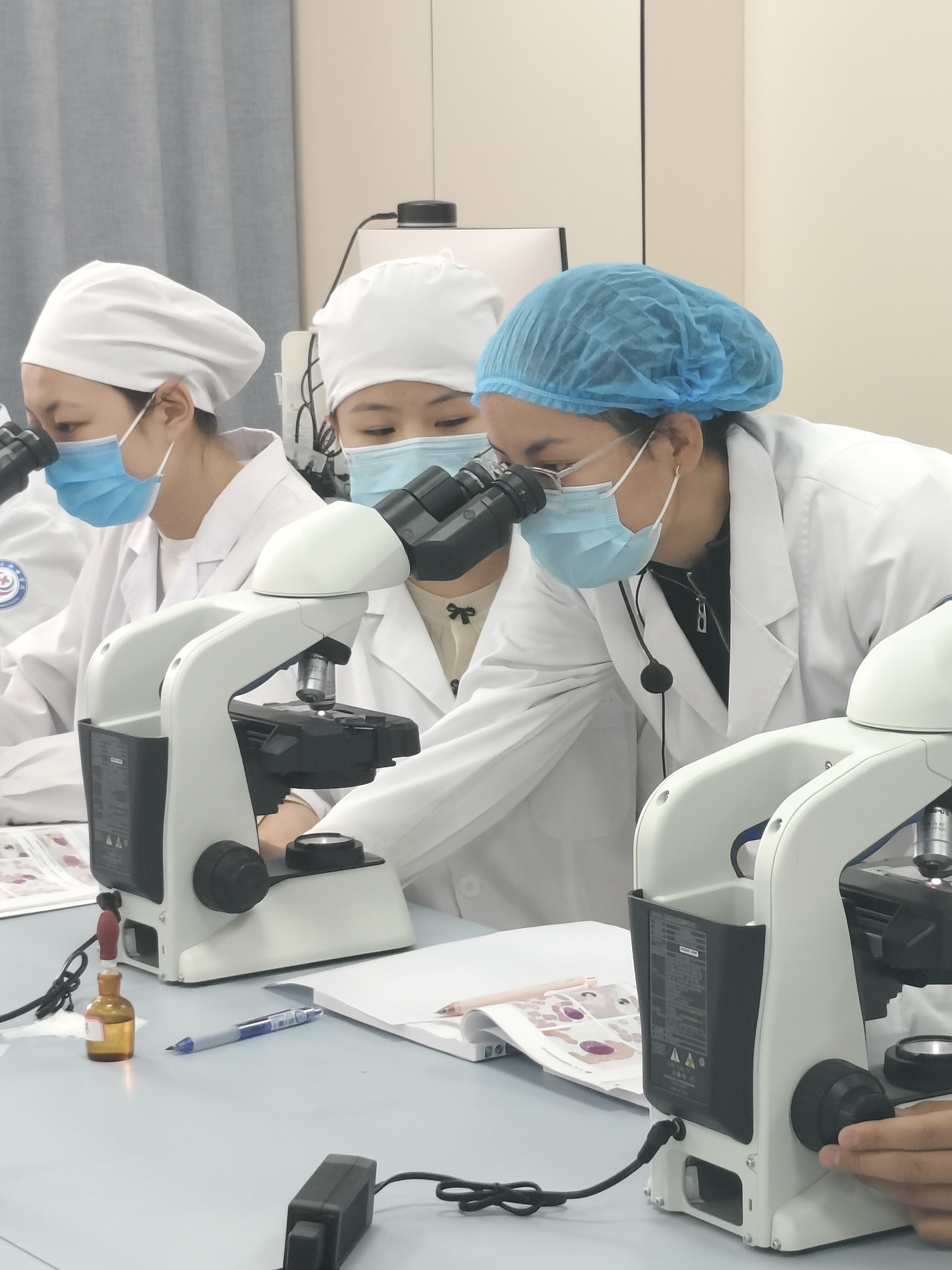 ♦ 冷木老师指导学生在显微镜下识别骨髓细胞 ♦