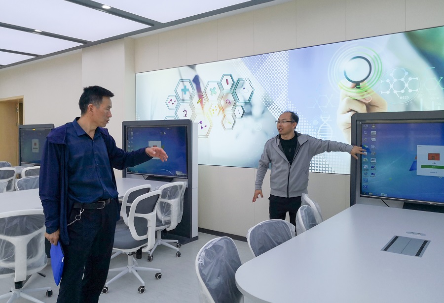 任书记一行主要调研和督导信息化四平台两中心的建设工期及后期使用培训情况。先参观了学校中心机房、创新数字医学中心和教师发展中心,随后在信息中心A209教室召开了调研会,信息中心主任杜学海就四平台两中心的建设及后期使用情况作了详细汇报。1.学校网络平台已于2017年9月建成并投入使用。2.中心云机房已于2018年3月建成并运行。3.学校官网已建成运行。4.校园电视台建设已完成将于9月底交付使用。5.微博微信建设完成并交付党委宣传部投入使用。6.Bb教学平台建设完成已上线一门课程(护理礼仪与美学)。7.考试平台已建成使用并完成2019届临床医学学生毕业考试及兰州新区卫生系统工作人员月考3次共计1100余人次。8.数字校园平台已完成人事、教务、办公、学工等基础信息录入。9.学校云盘已于今年5月建成并投入使。10. 创新数字医学中心和教师发展中心将于9月底交付使用。11.信息中心连续两年组织学校老师参加全省教学能力大赛取得优异成绩,今年冲出省赛取得一名参加国赛名额。12.制定完成《KY开元集团官网在线开放课程建设管理办法(试行)》。